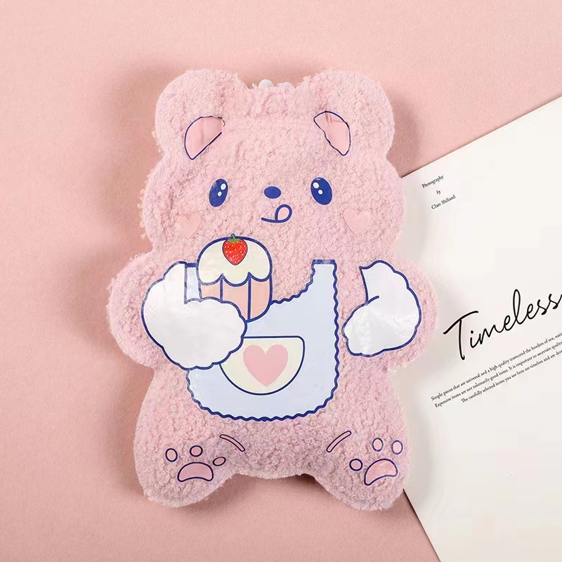 New Cartoon Teddy Velvet Hot Water Bag Warm Hand Treasure Hot Compress Water Injection Bag Student Small Warm Hand Bag Four Colors