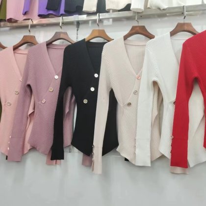New Casual Niche Unique and Chic Sweater with Cross V-neck Pit Knitted Base Shirt for Women Spring and Autumn