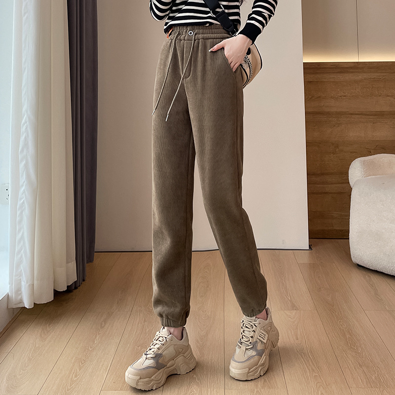 New casual nine points ladies pants elastic waist women’s solid color radish pants drawstring women’s harem pants wholesale