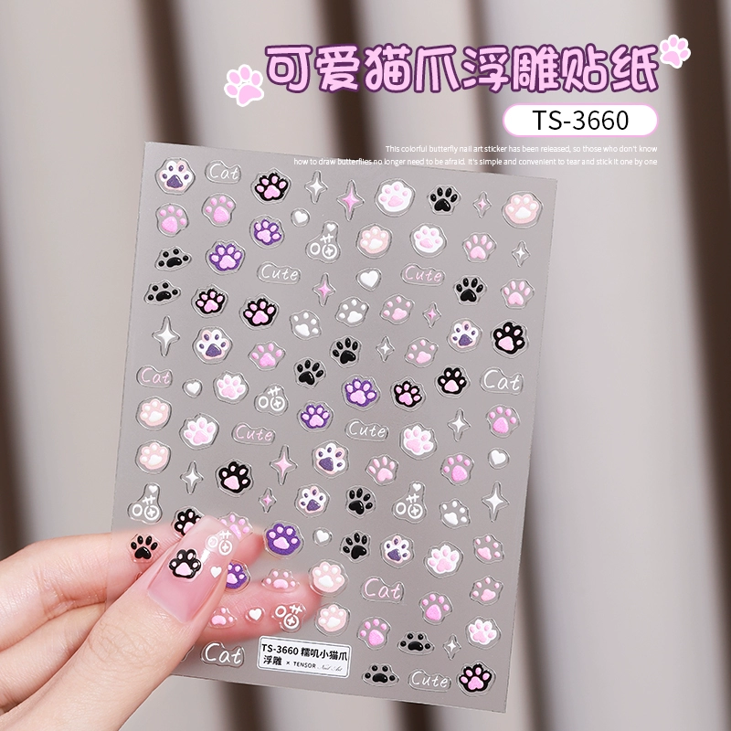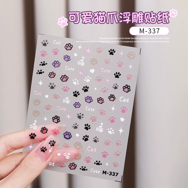 New cat claw nail art stickers ins cartoon Japanese relief three-dimensional nail stickers cute adhesive jelly stickers accessories