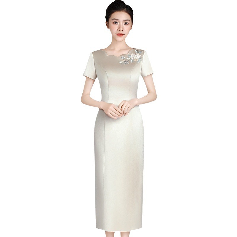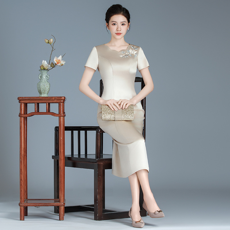 | nameOriginal | New Champagne Color Young Mother Dress Improved Cheongsam Elegant dress Middle-aged and Elderly Women's Wedding Dress |