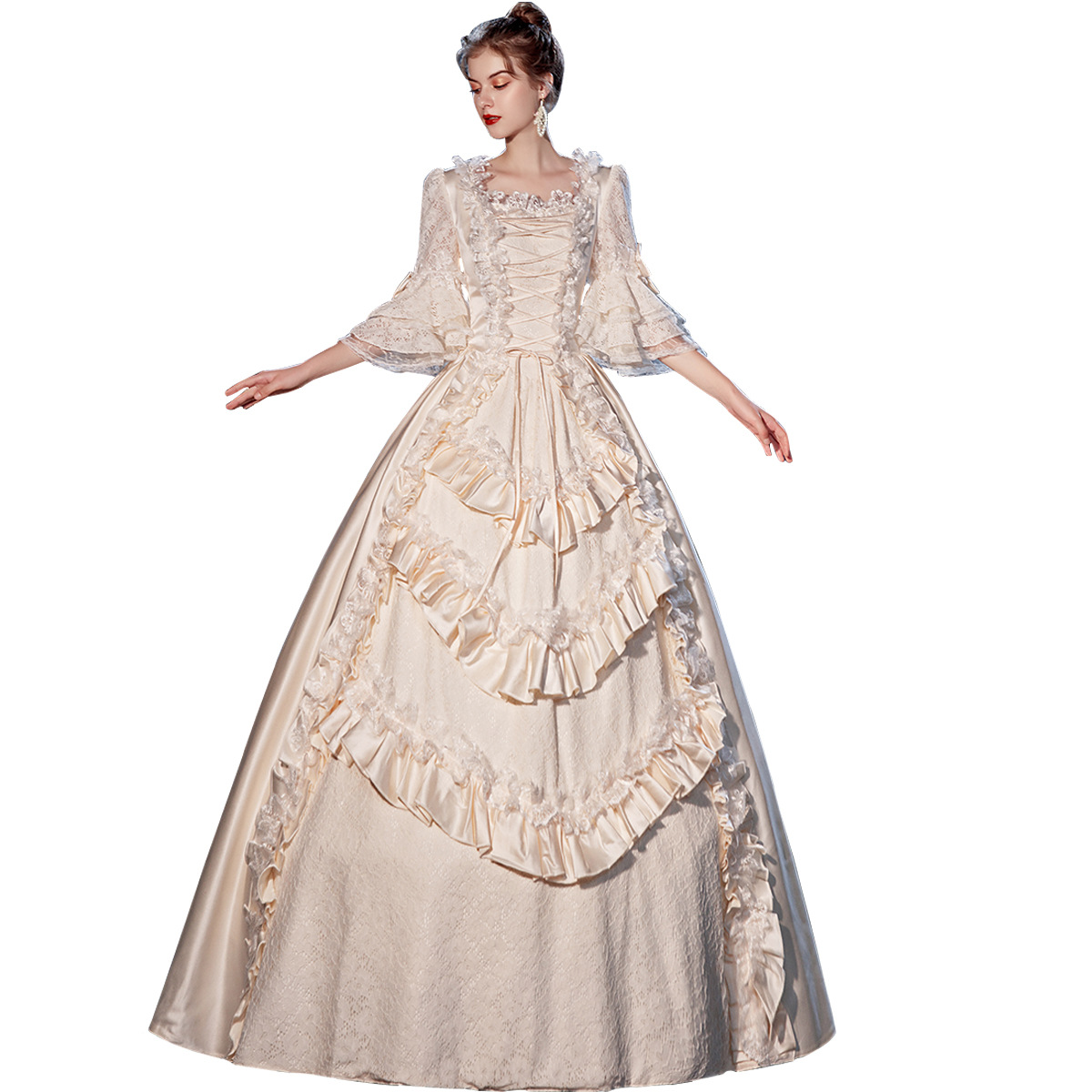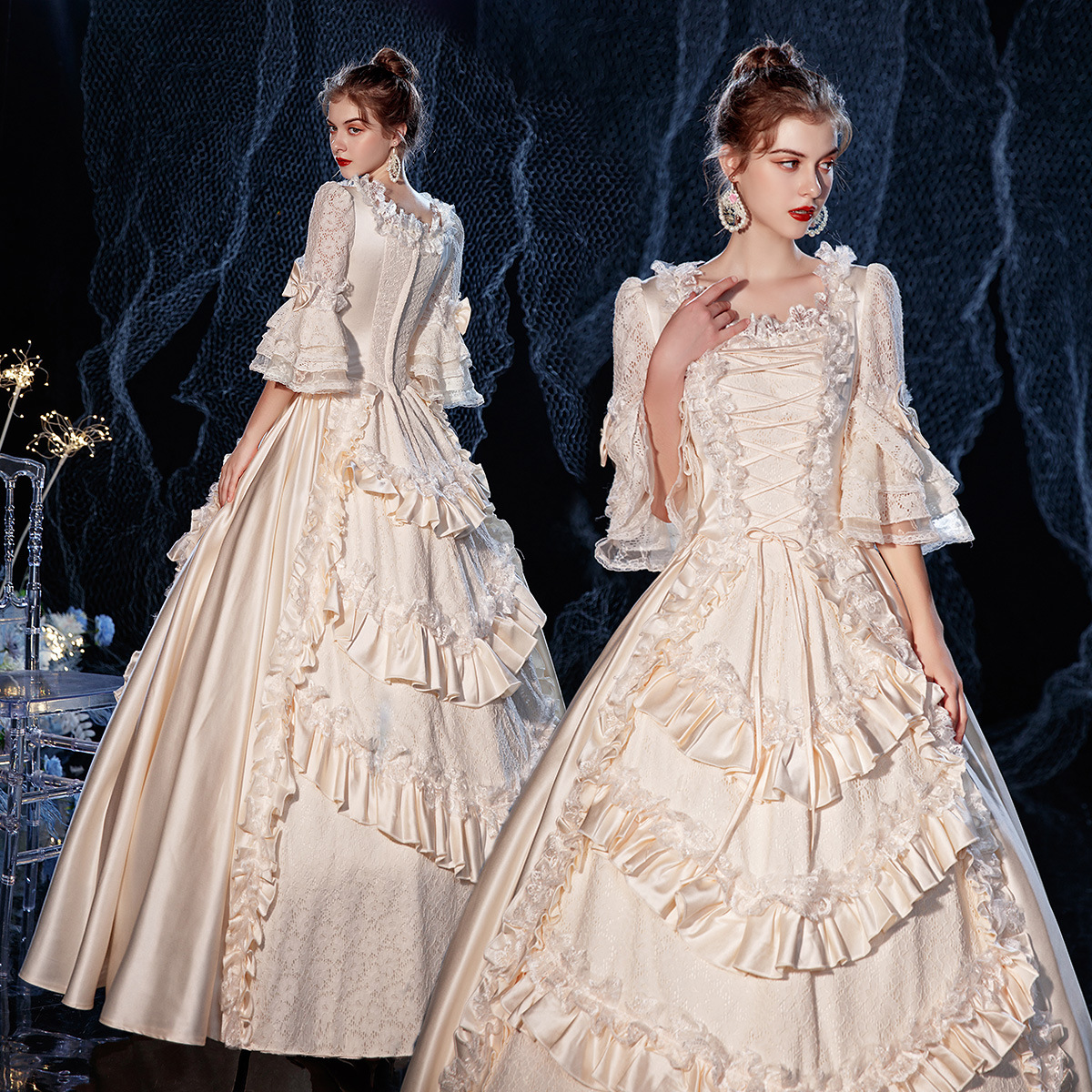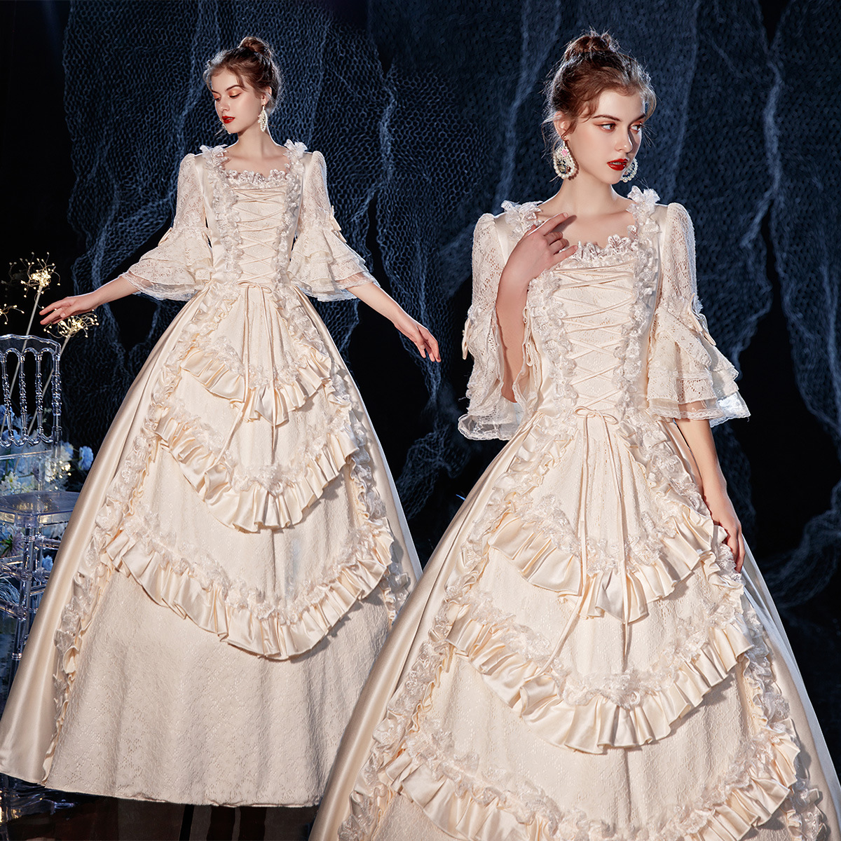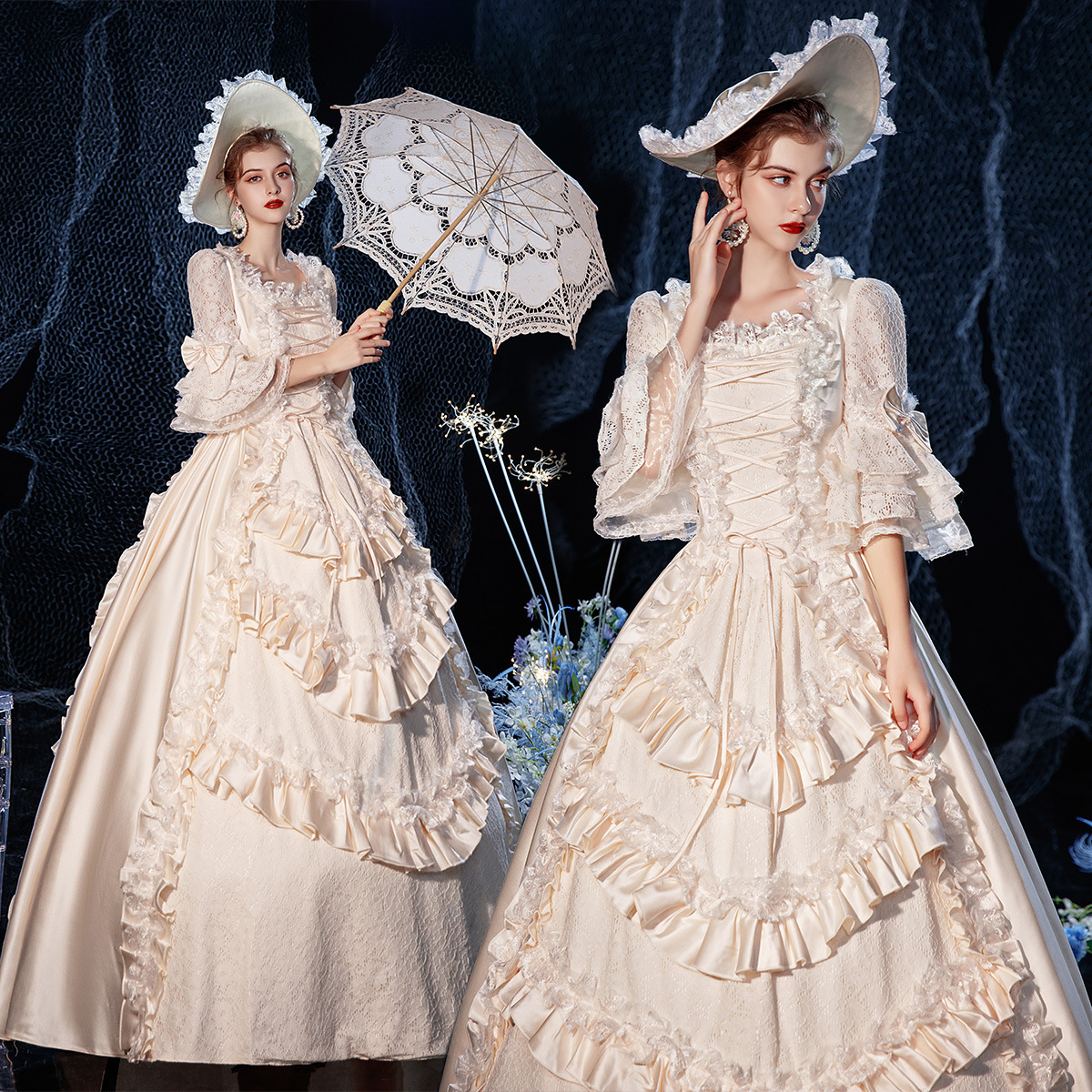 | nameOriginal | New Champagne French Court Dress Annual Meeting Studio Catwalk Drama Stage Performance Dance Lace European Style Dress |