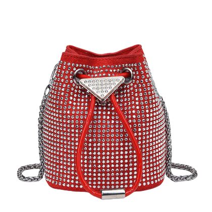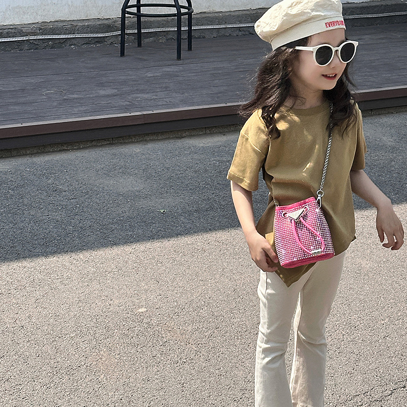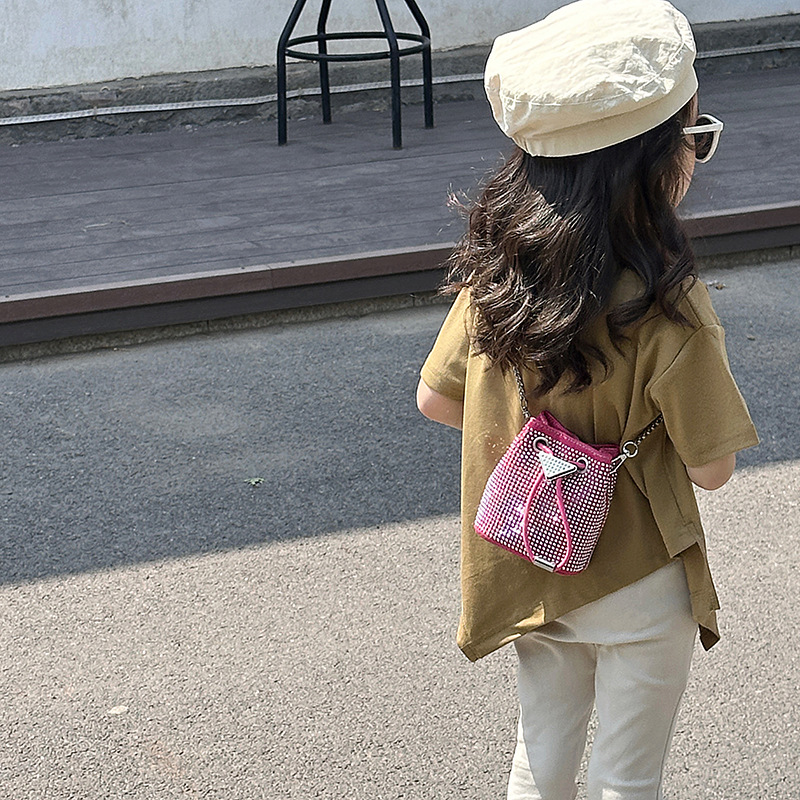 New children’s bag mini full diamond drawstring bucket bag western style chain girls parent-child lipstick messenger bag wholesale