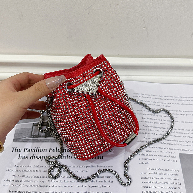 New children's bag mini full diamond drawstring bucket bag western style chain girls parent-child lipstick messenger bag wholesale