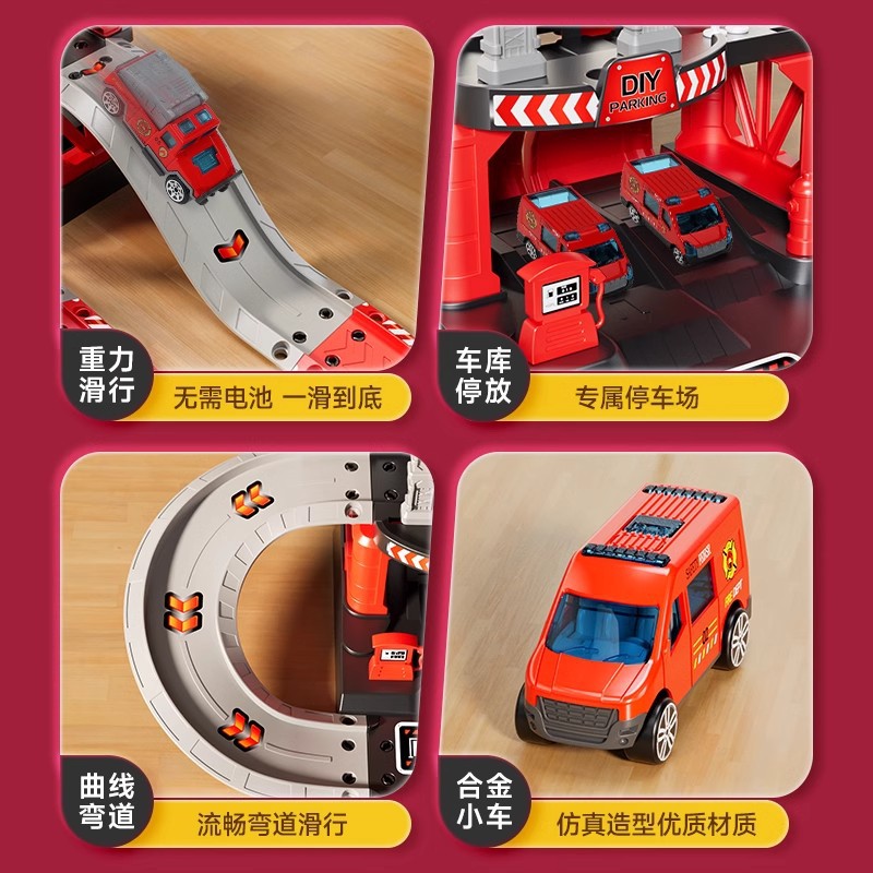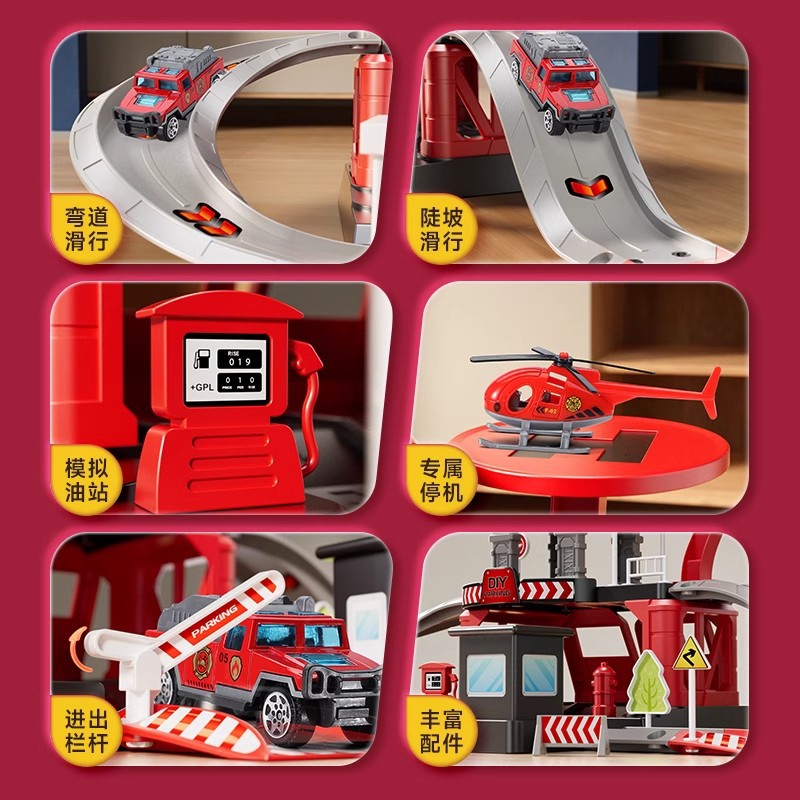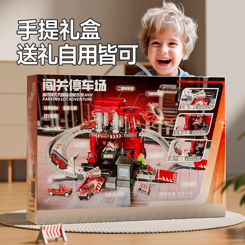 New Children’s Car Parking Taxi Railcar Breaking through the Great Adventure Fire 3 to 9 Year Old Boy Toy Gift