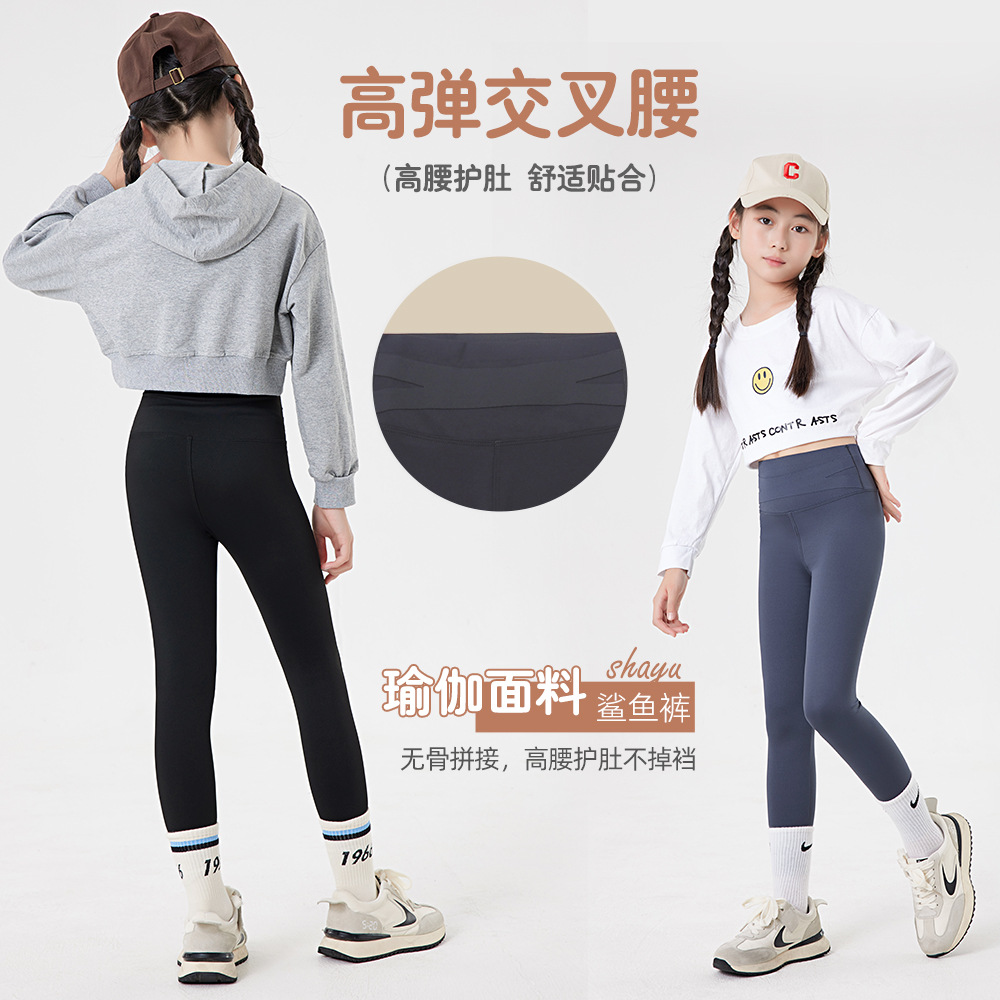 | nameOriginal | New children's fleece-lined warm shark pants cross waist non-slip leggings medium and large girls outer pants yoga pants |