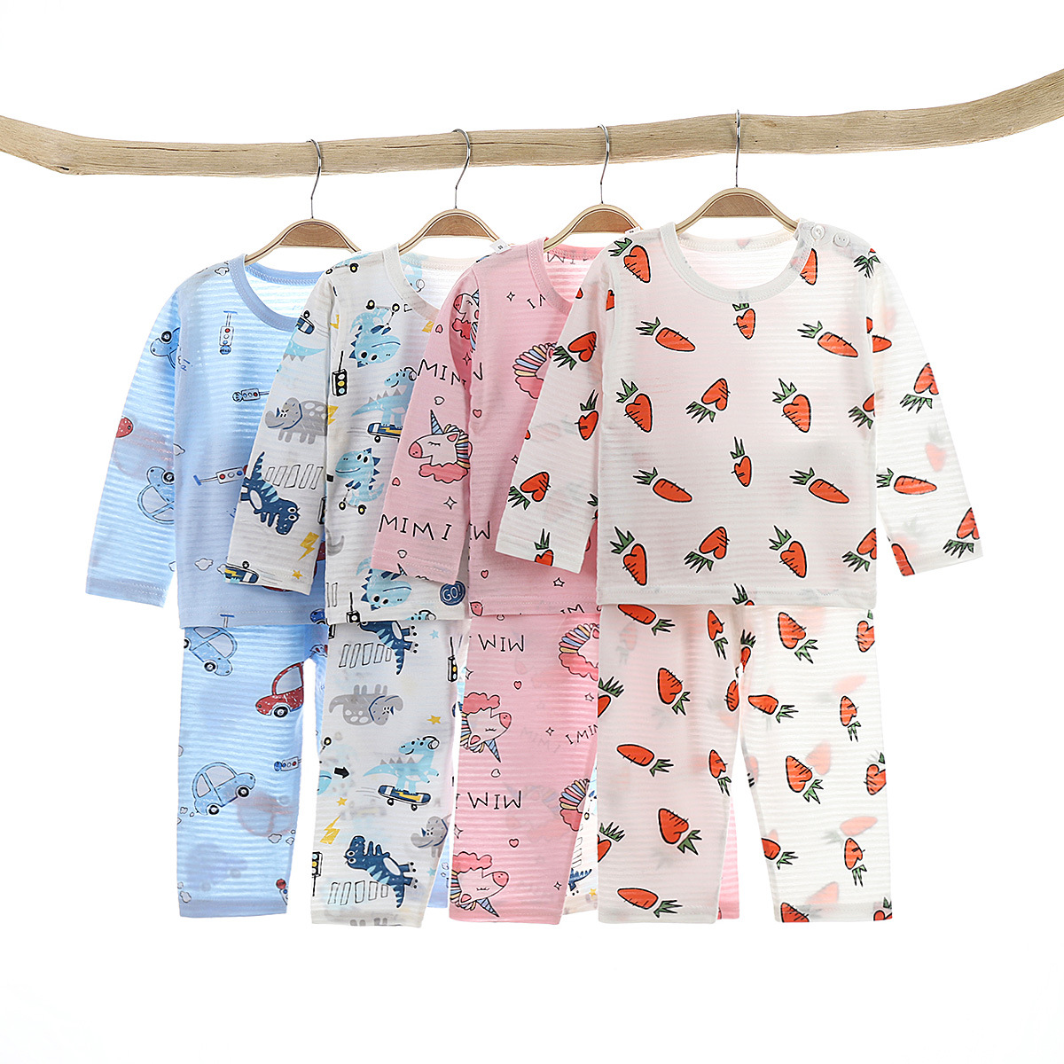 New Children’s Home Clothes Pajamas Summer Cotton Underwear Set Hollow Thin Air-conditioning Clothing Two-piece Set for Boys and Girls