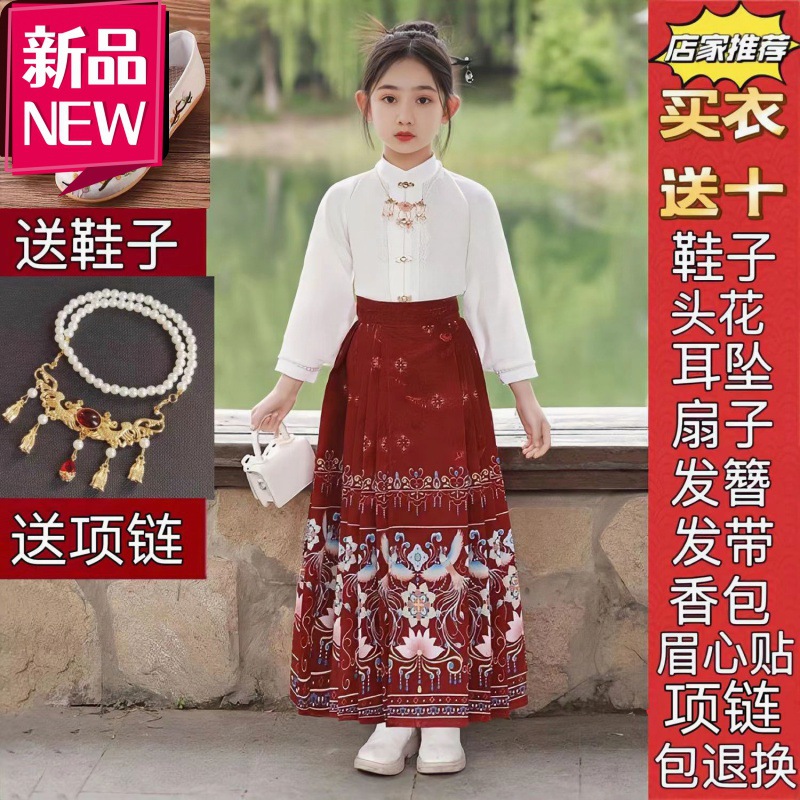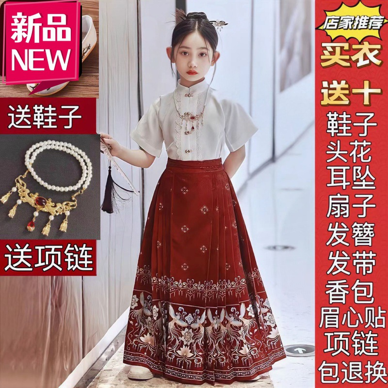New Children’s Horse Face Skirt suit Girl’s Ming Style Chinese Style Daily Hanfu Skirt Spring and Summer Thin Tang Suit