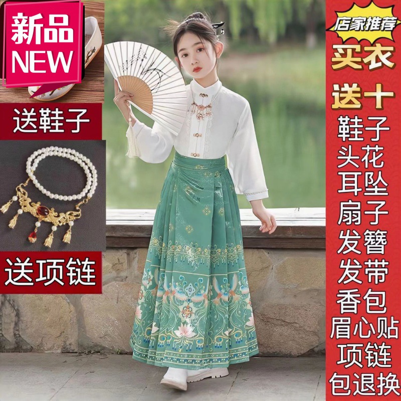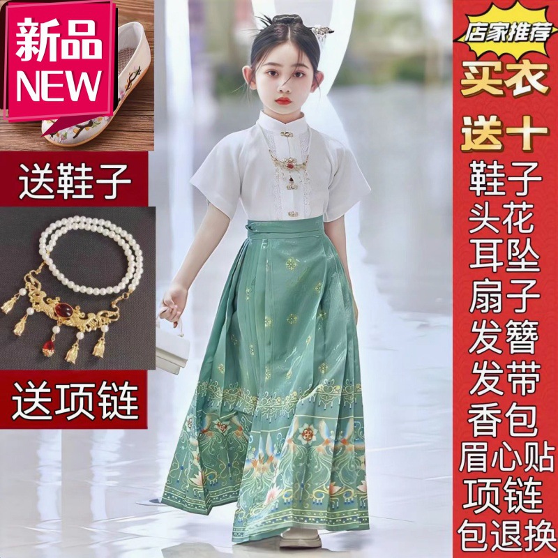 New Children's Horse Face Skirt suit Girl's Ming Style Chinese Style Daily Hanfu Skirt Spring and Summer Thin Tang Suit