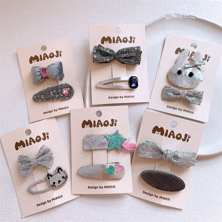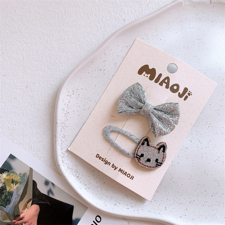 | nameOriginal | New children's silver gray bow hairpin girls' cute cartoon bangs clip side broken hair BB clip hairpin |