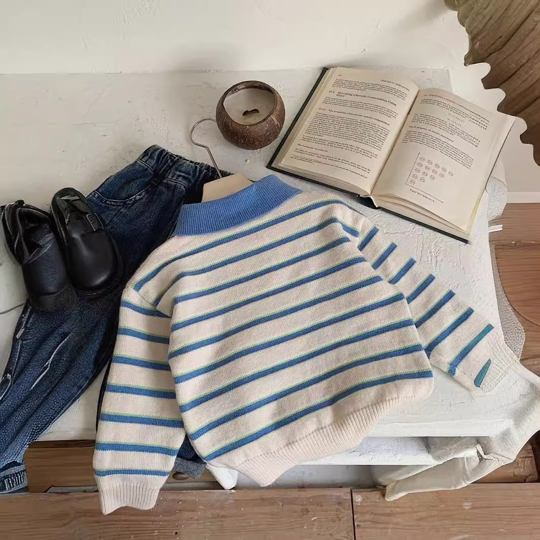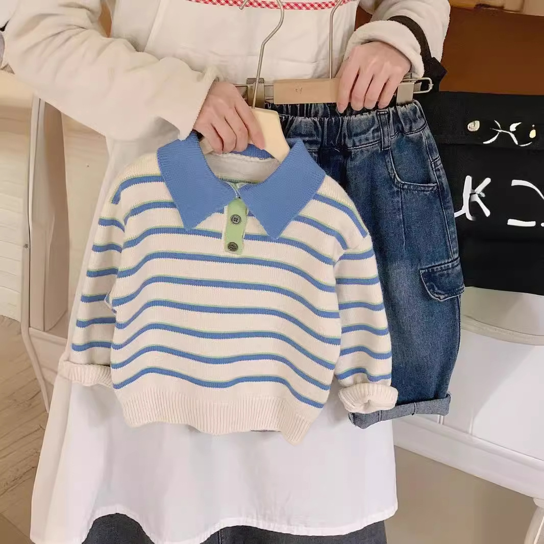 | nameOriginal | New Children's Sweater 2024 Spring Striped Polo Shirt for Boys Korean Children's Wear Pullover Knitted Top for Baby |
