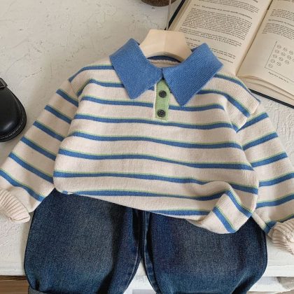 | nameOriginal | New Children's Sweater 2024 Spring Striped Polo Shirt for Boys Korean Children's Wear Pullover Knitted Top for Baby |