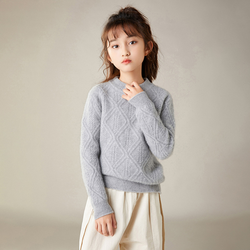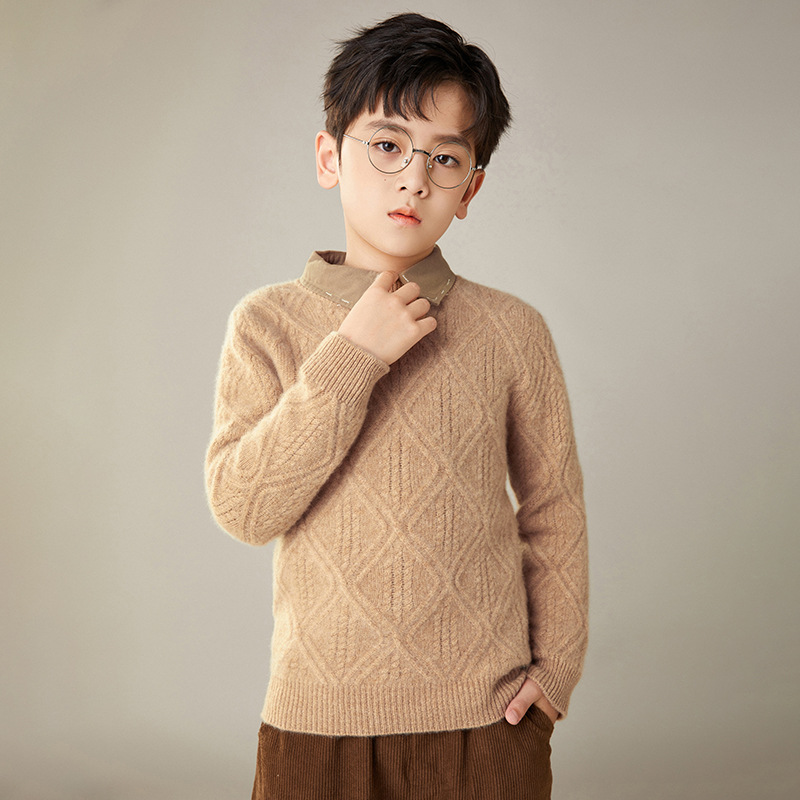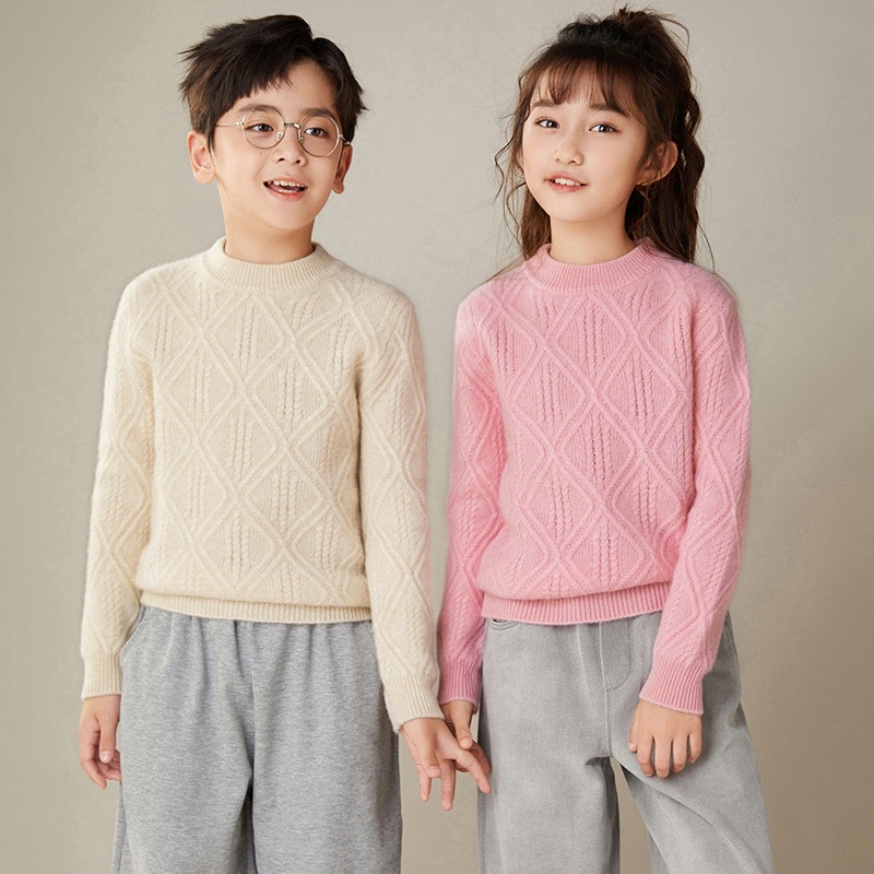 New Children's Wear Children's Half High Collar 100 Pure Wool Sweater for Boys and Girls Strung Large Diamond Sweater Baby Base Shirt