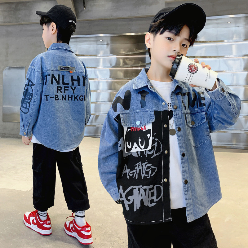 New Children’s Wear Korean Style Spring and Autumn Children’s Wear Boy’s Shirt Jacket Big Children’s Spring Fried Street Handsome Shirt Trendy