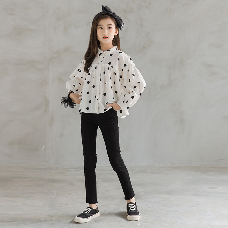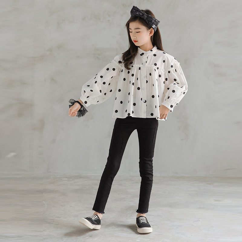| nameOriginal | New children's women's polka dot top sweet temperament long-sleeved top Korean style medium and big children's western style casual versatile |