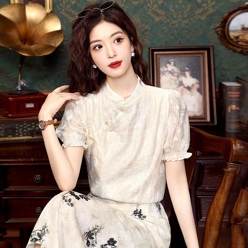 | nameOriginal | New Chinese Button Shirt Women's 2024 Summer New National Style Chic Bubble Sleeve Short Sleeve Shirt Top |
