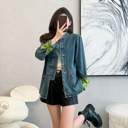 New Chinese Coat Cross-border 2024 Spring New Denim Short Jacket Disc Buckle Chinese Style Leisure Loose