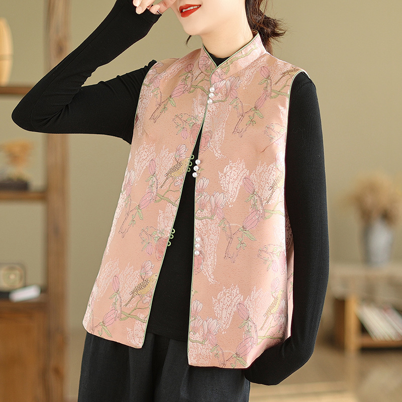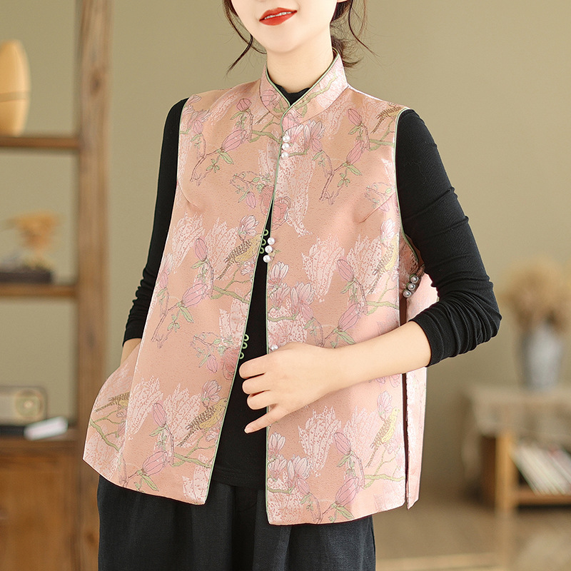 | nameOriginal | New Chinese court style satin jacquard Vest Women's Spring outer Tang suit cheongsam waistcoat improved top |