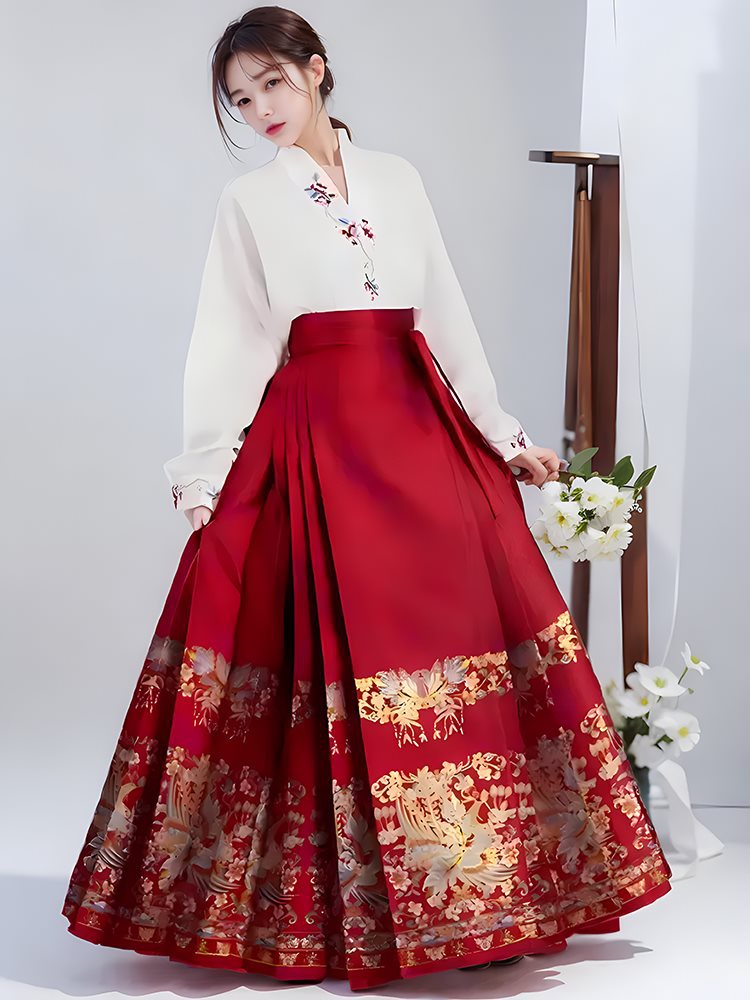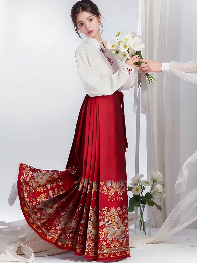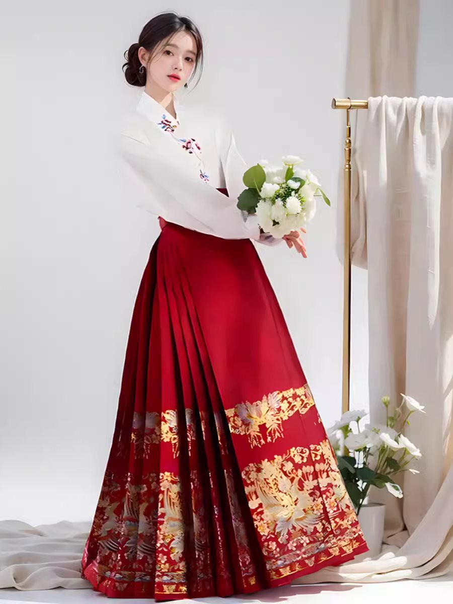 | nameOriginal | New Chinese Embroidered Hanfu Top Two-Piece Horse-Face Skirt Two-Piece Spring plus size Women's chubby girl Red Engagement Toast suit |