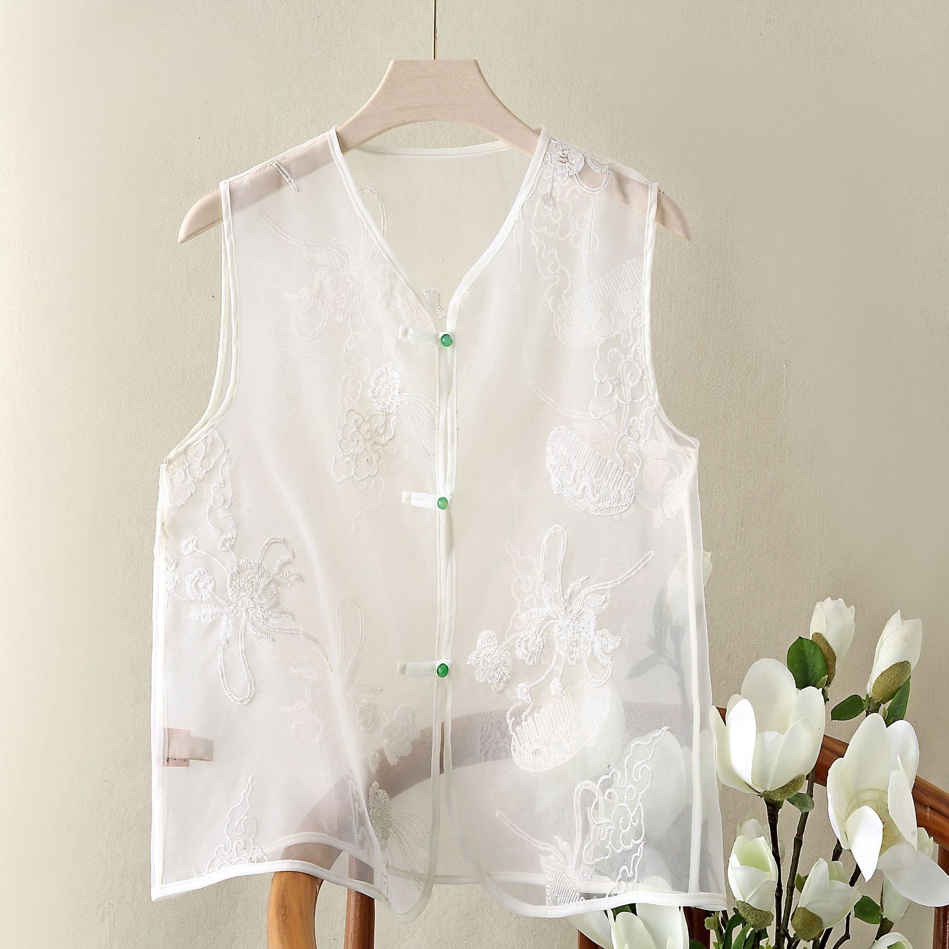 | nameOriginal | New Chinese Embroidered Vest Women's National Style Tang Dress High-rise Vest Silk Xiangyun Embroidered Horse Clip with Buckle on Waistcoat |