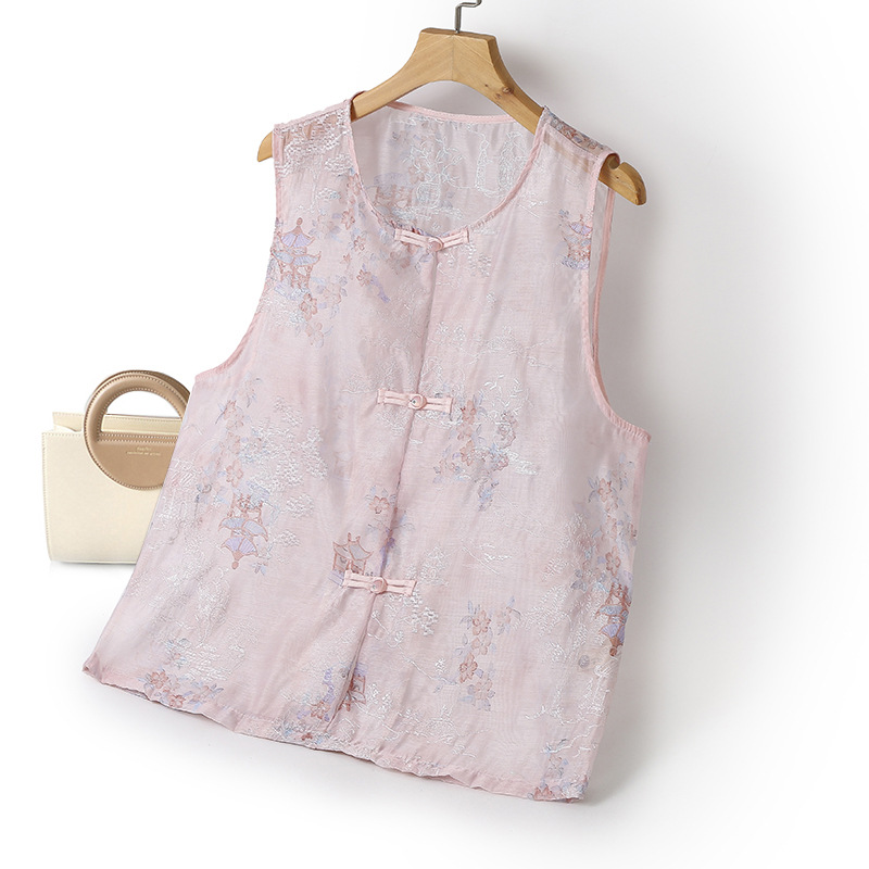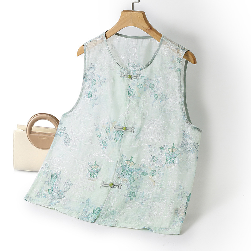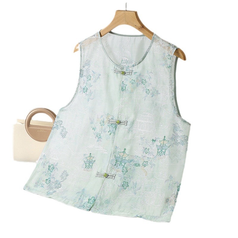New Chinese Embroidered Vest Women's National Style Vintage Buckle Tang Dress High-rise plus size Vest Embroidered Vest Outer Waistcoat