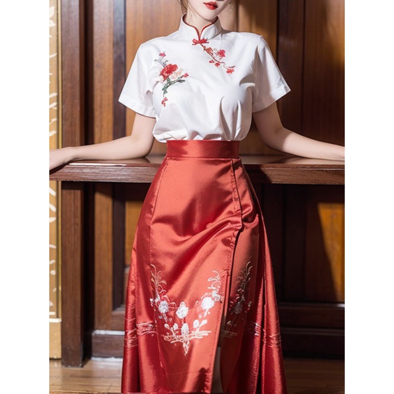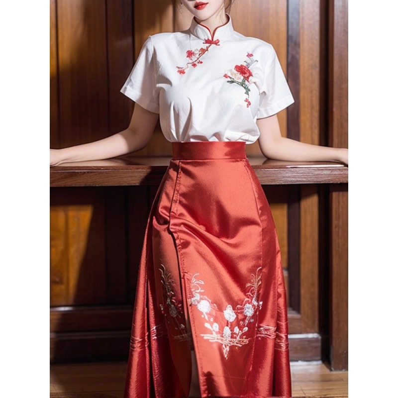 | nameOriginal | New Chinese Fashion Horse Face Skirt Embroidered Shirt suit 2024 Summer New National Style Fashionable Elegant Two-piece Set |