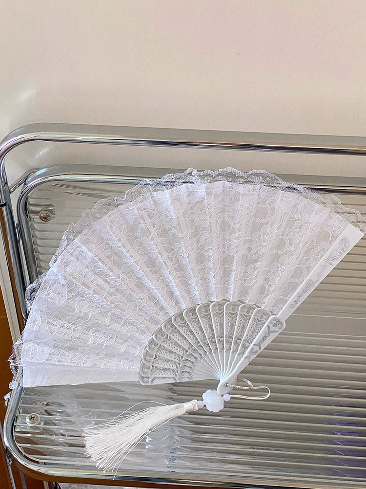 New Chinese Hanfu Cheongsam Lace Tassel Small Fan