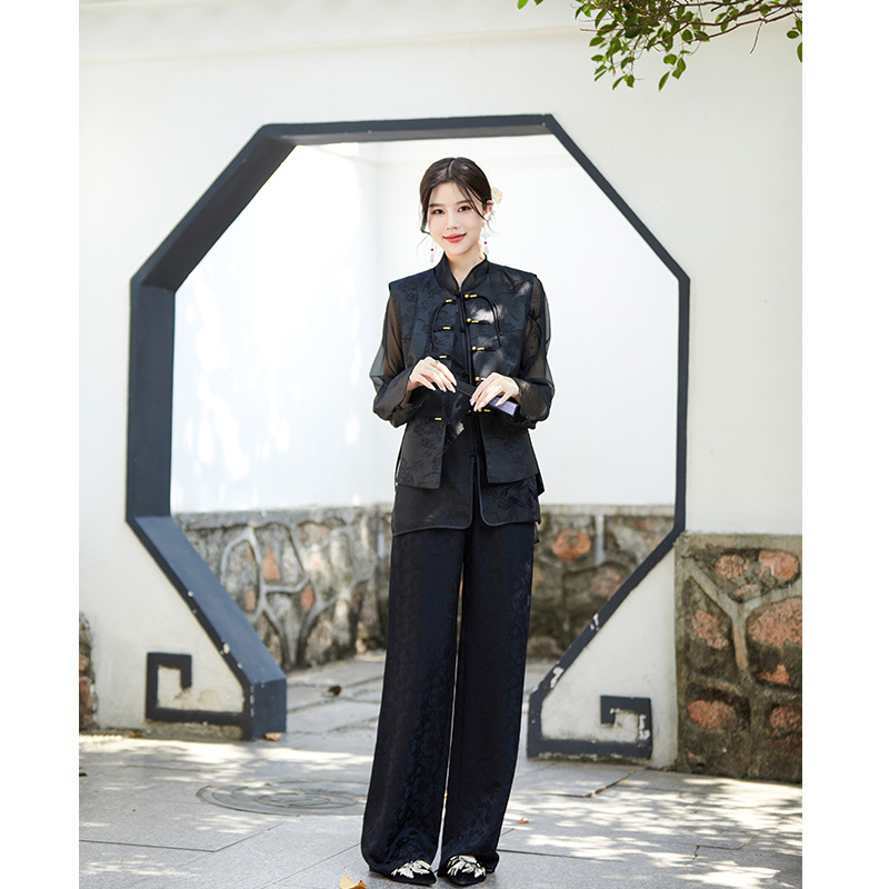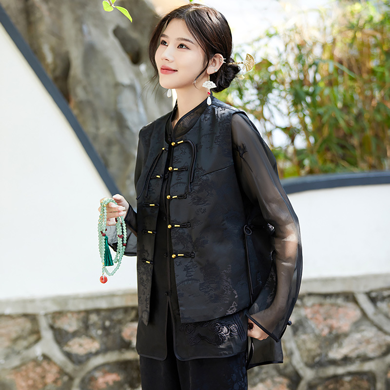 New Chinese Jacquard Vest Coat Women's 2024 Style Style National Style Buckle Sleeveless Vest Top Vest