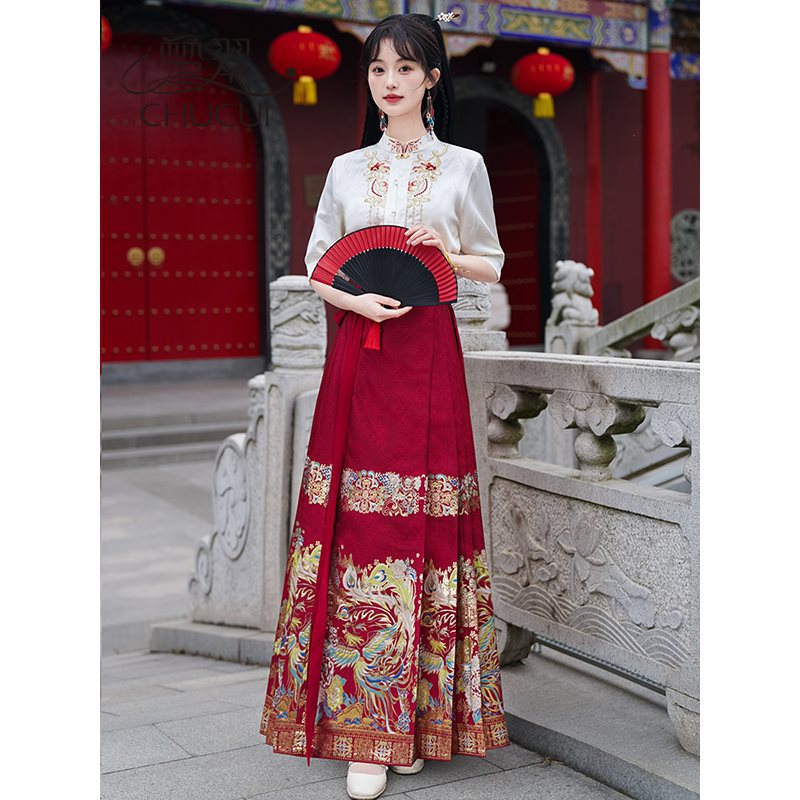 | nameOriginal | New Chinese Ming-made Hanfu Female Adult Daily Wear Summer 2024 New Red Horse-faced Skirt Top Full suit |