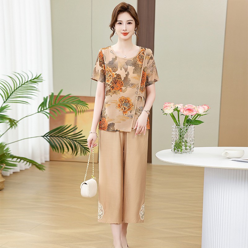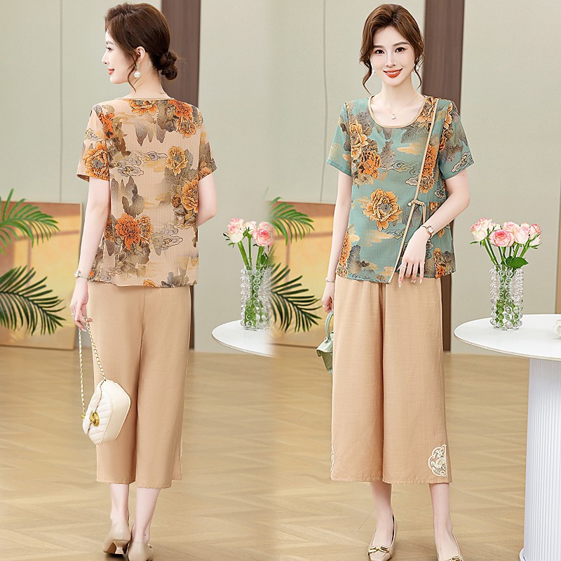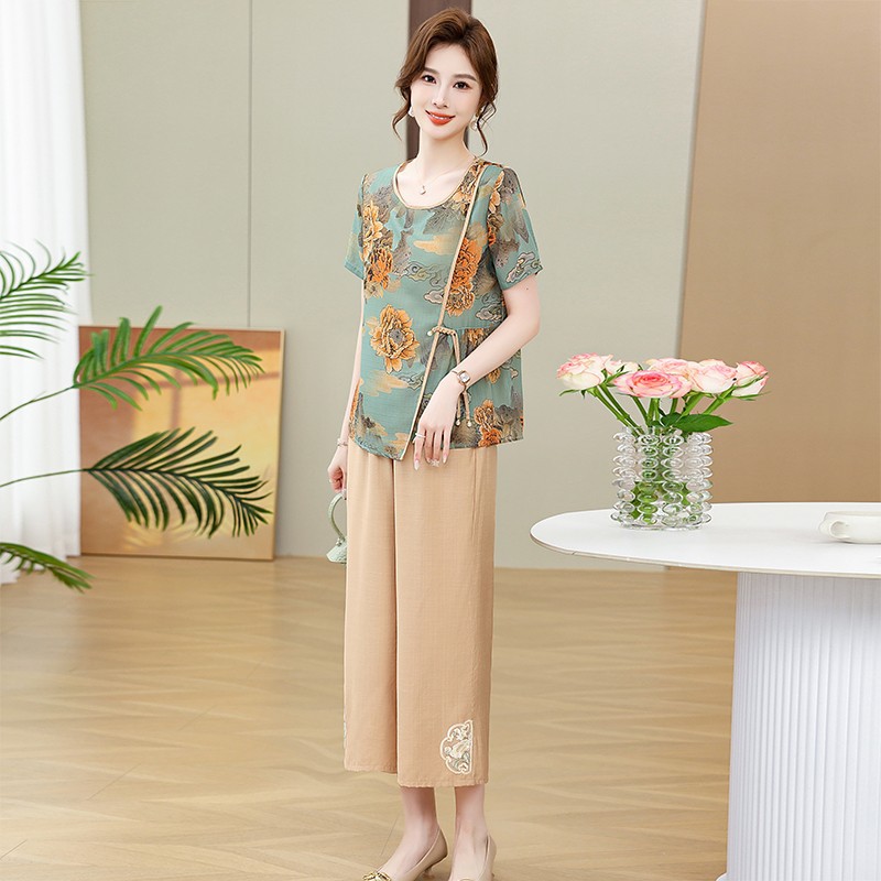 | nameOriginal | New Chinese Mother Summer Dress suit 2024 New Western Style Small Shirt for Middle-aged and Elderly Women Summer National Style Short-sleeved T-shirt |