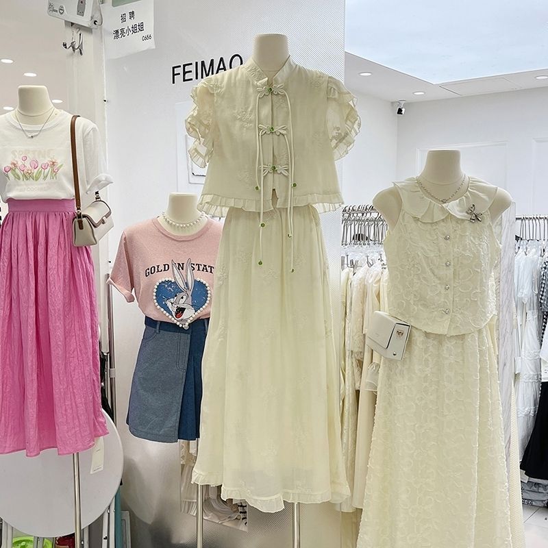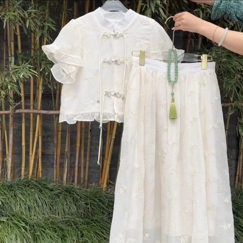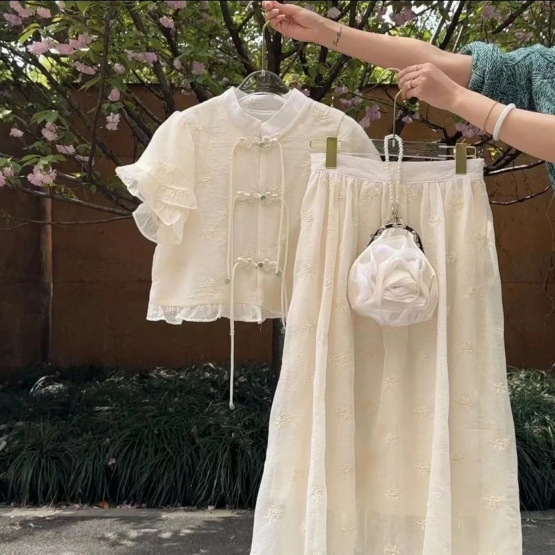 | nameOriginal | New Chinese Retro suit Button Short Sleeve Shirt Women's Summer High Waist Skirt Chinese Style Two-Piece Skirt |