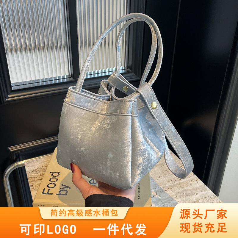 New Chinese Satin Large Capacity Vegetable Basket Bag Summer Women’s All-match Bucket Bag High-end Niche Shoulder Bag