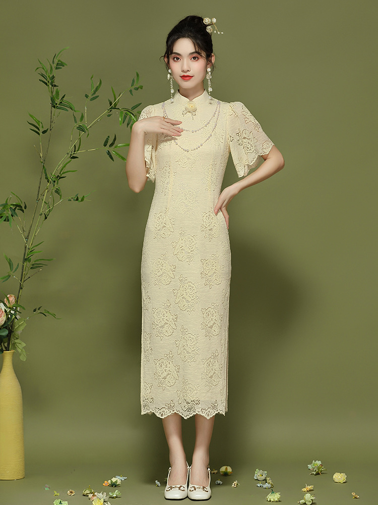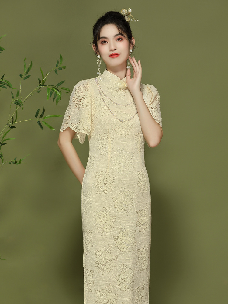 New Chinese Style 2024 Summer New Elegant Lace Improved Young Cheongsam dress 24155