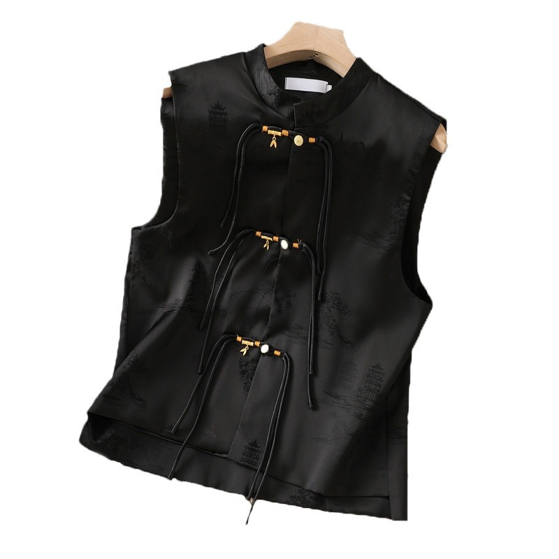 | nameOriginal | New Chinese style black vest top women's clothing spring and summer improved Tang suit buckle waistcoat thin vest coat |