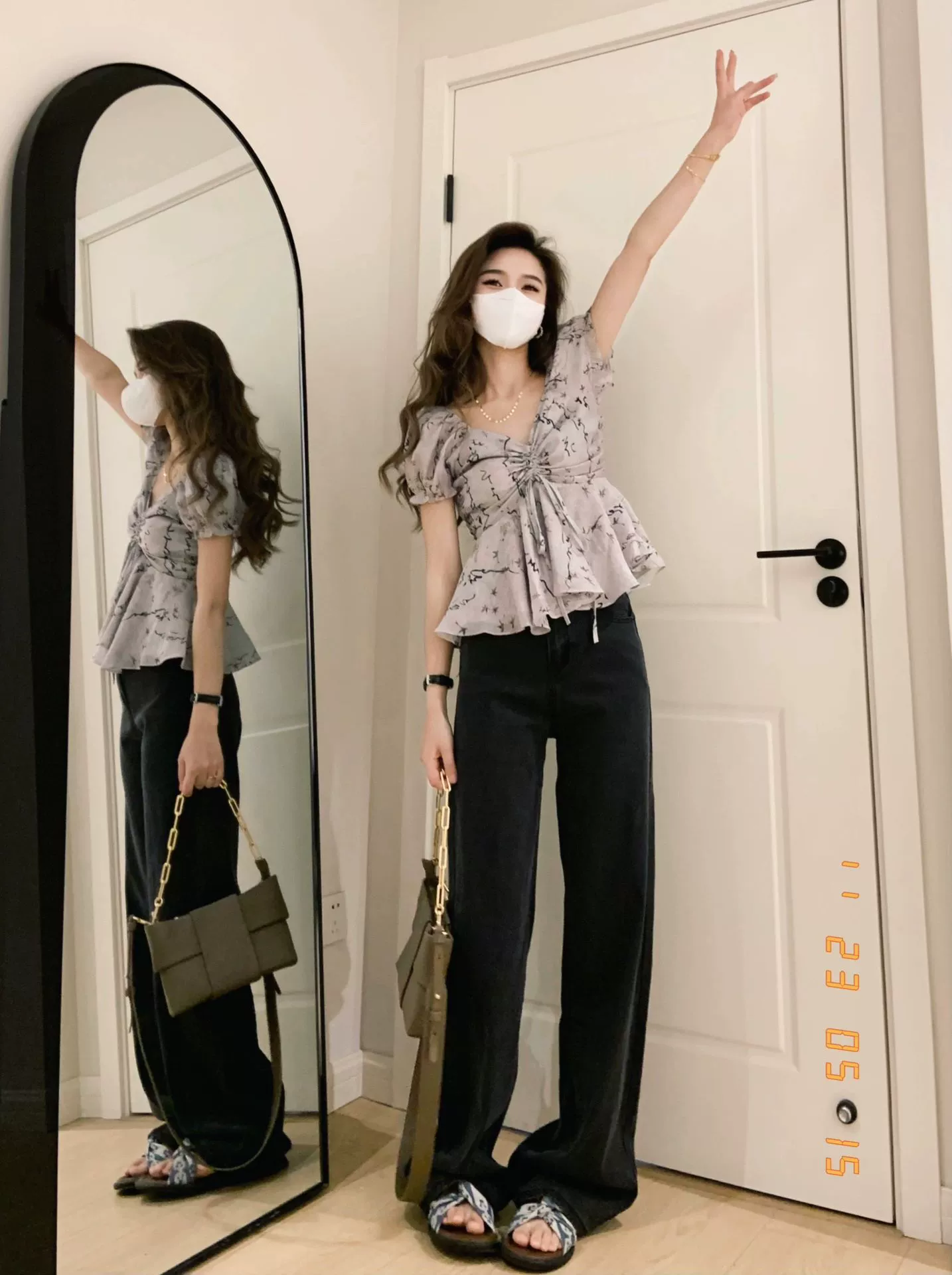| nameOriginal | New Chinese style bubble slim v-neck top short-sleeved shirt |