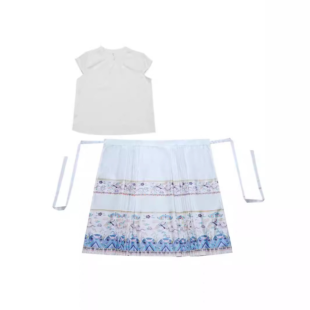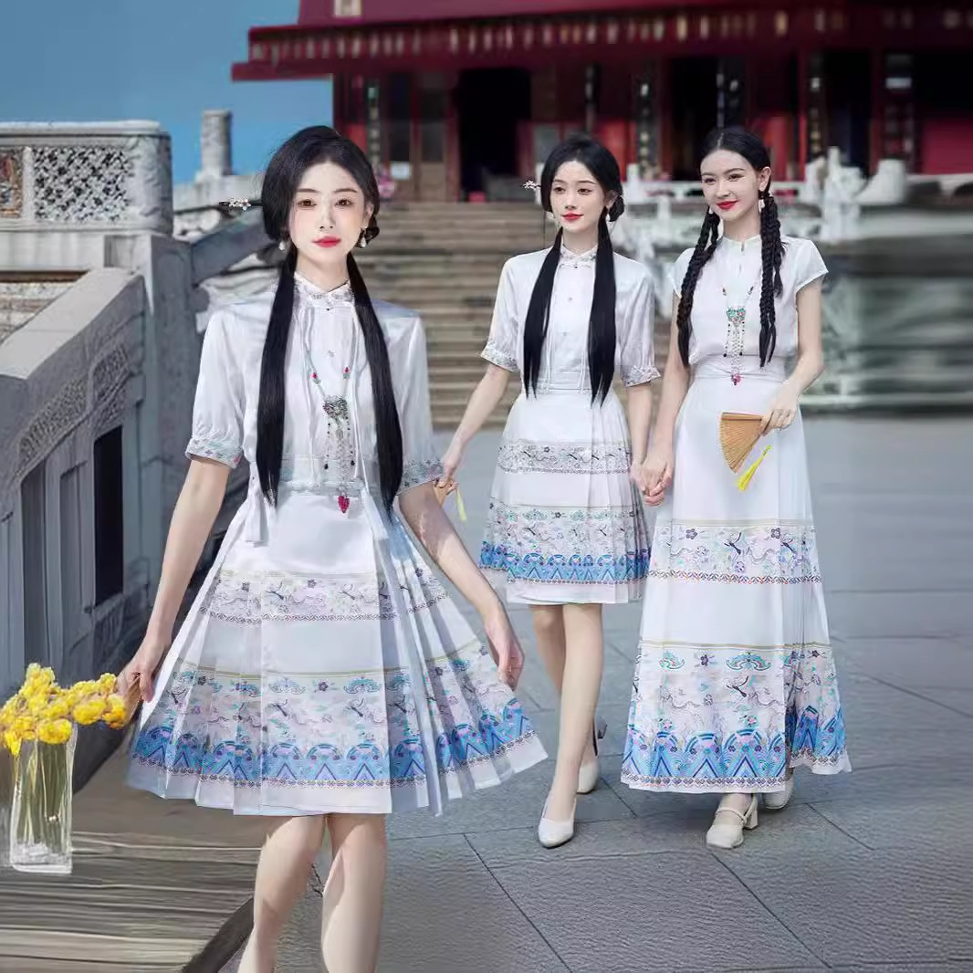 New Chinese Style Buckle Jacquard Collar Top One-piece Large Swing National Fashion Printed Horse-faced Skirt Women’s Two-piece Suit