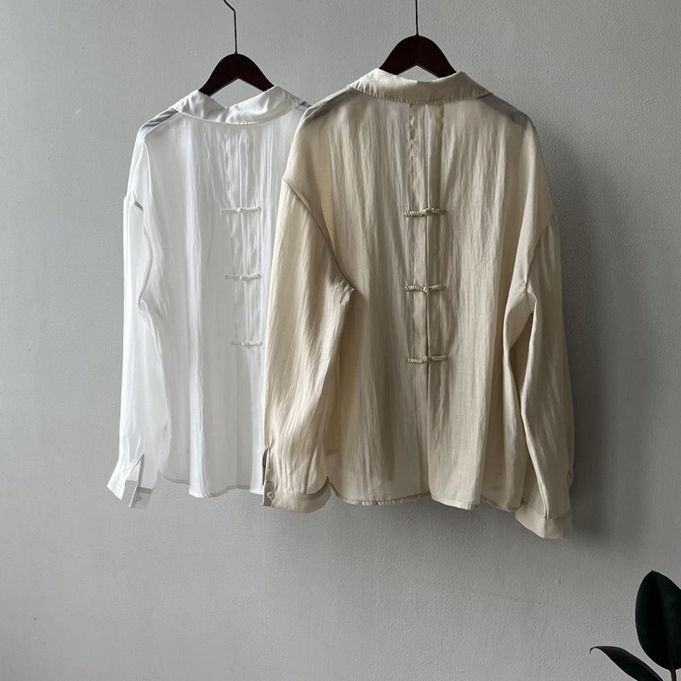 | nameOriginal | New Chinese-style Buckle Thin Tencel Sunscreen Shirt Women's Summer Rear Split Long-sleeved Top Design Sense Casual Shirt |