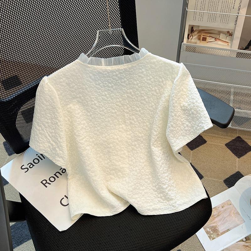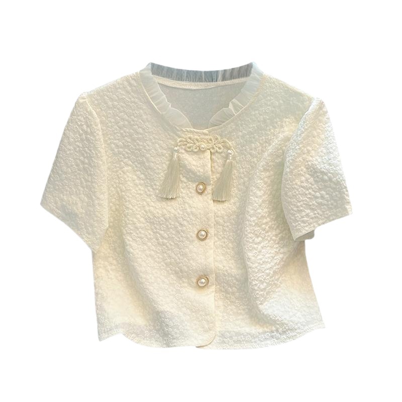 | nameOriginal | New Chinese-style Button Jacquard Chiffon Shirt Niche Design Slim-fit Short Ear Collar Top for Women |