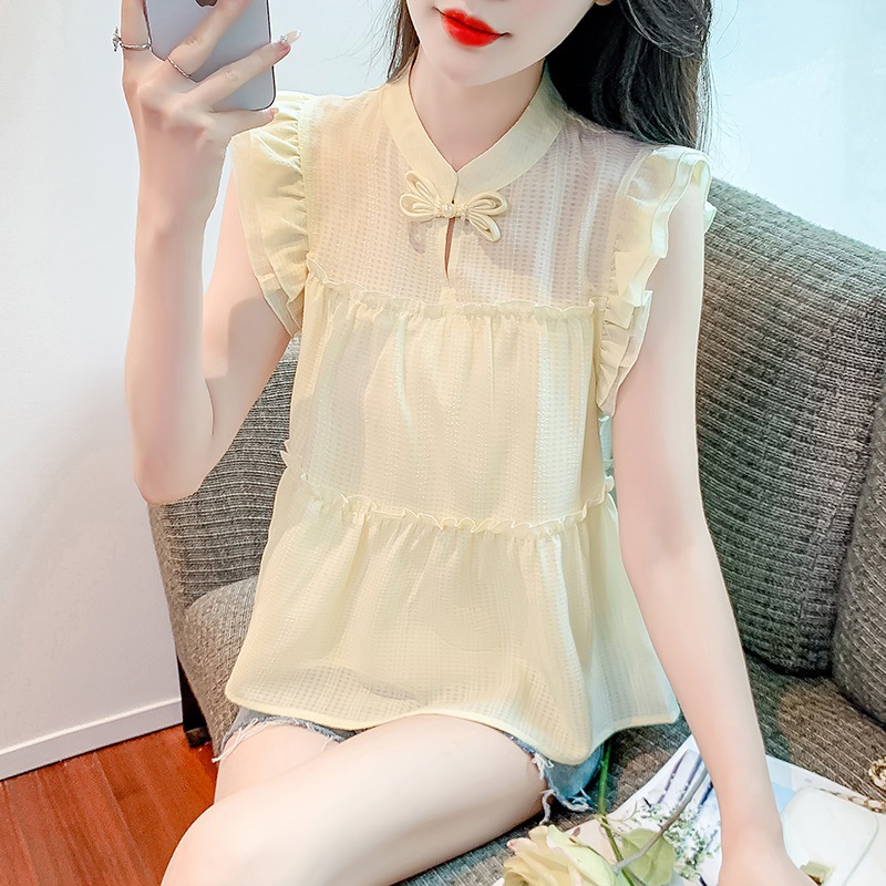 | nameOriginal | New Chinese-style Button Small Flying Sleeve Chiffon Top Women's Summer Thin Sleeveless Vest Shirt Western Style Age-reducing Doll Shirt |