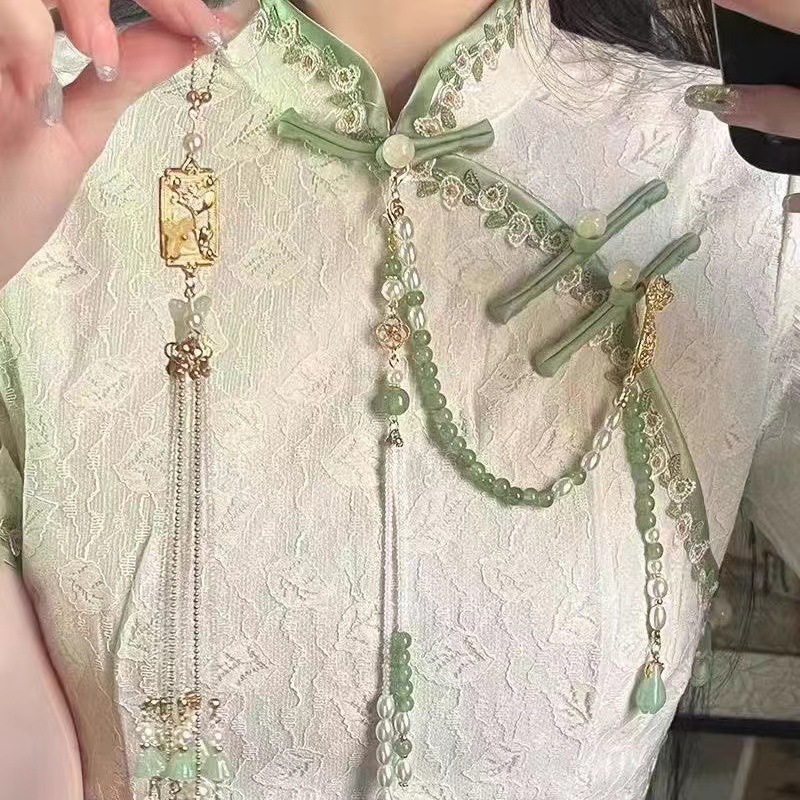 New Chinese-style Cheongsam Pendant Spring and Summer Fresh Chest Pendant Retro Chinese-style Pearl Tassel Pendant Accessories Clothing