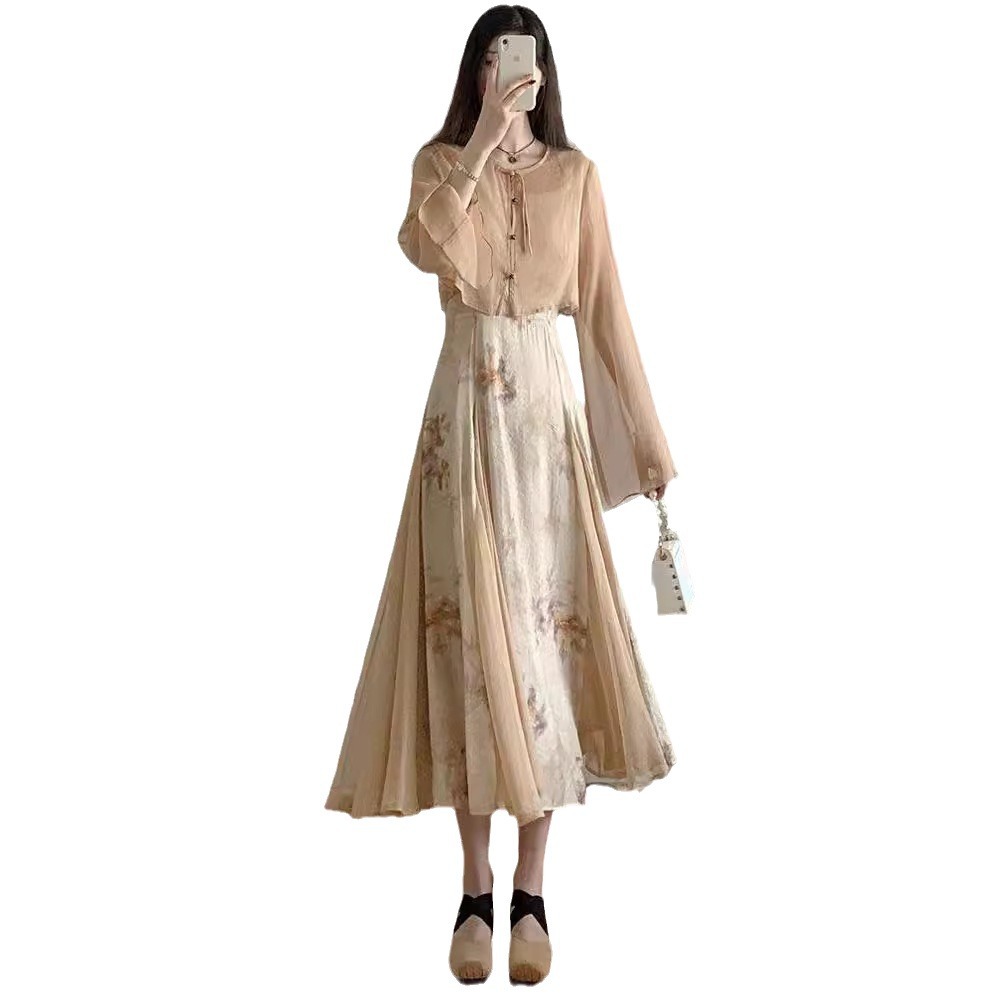 | nameOriginal | New Chinese style Chinese style improved socialite Hanfu element Zen sling dress women's summer tea series wear match suit |