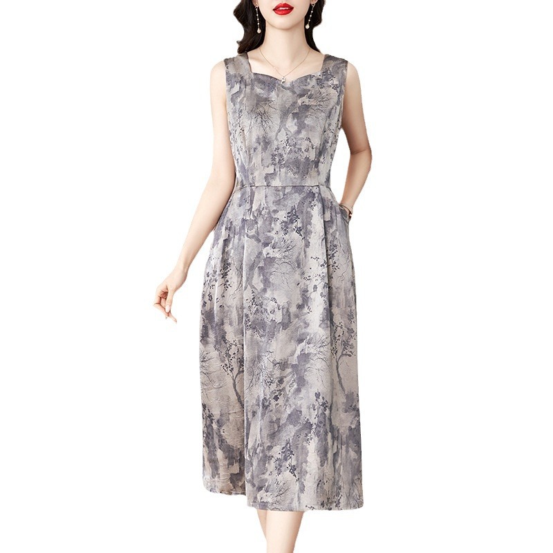 New Chinese Style Chinese Style Ink Painting Set Dress Two-piece Dress Women's Spring and Summer New Middle-aged 2024