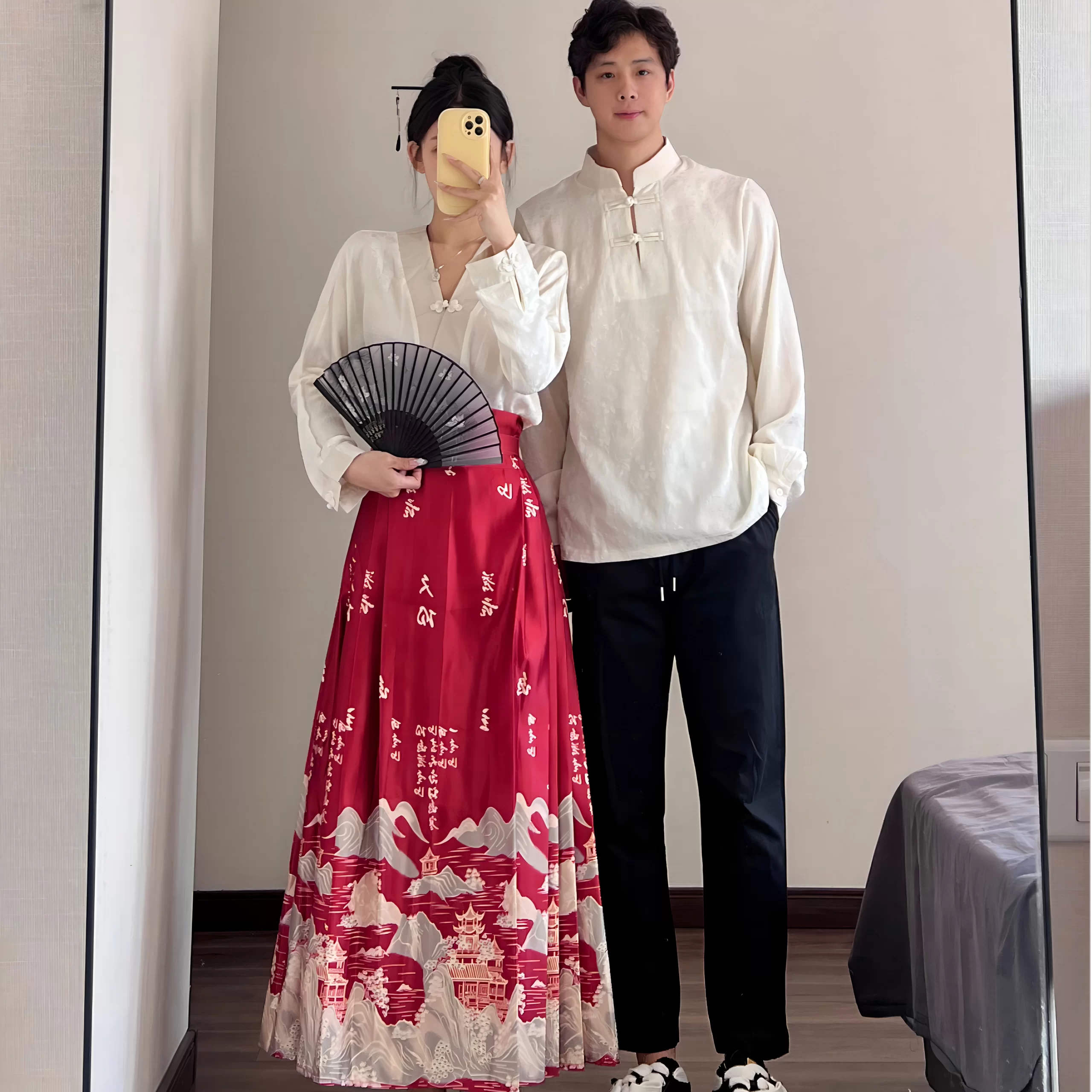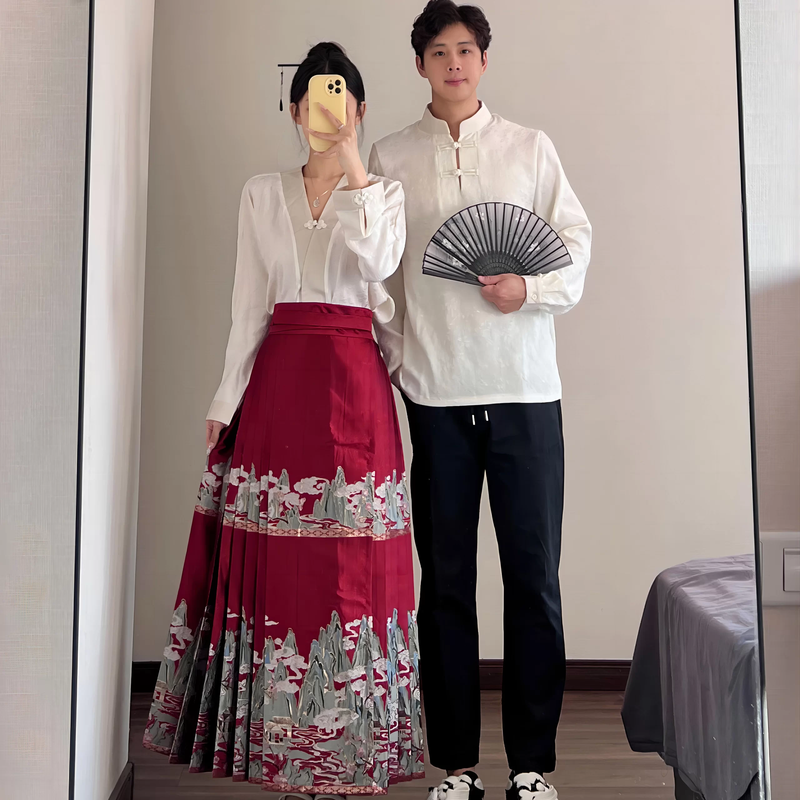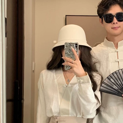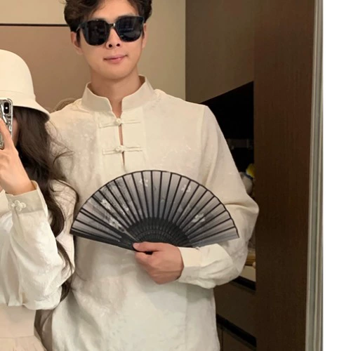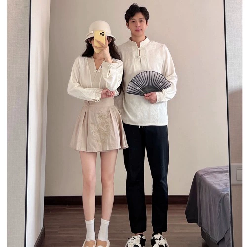 New Chinese style Chinese style long-sleeved shirt half-length couple outfit