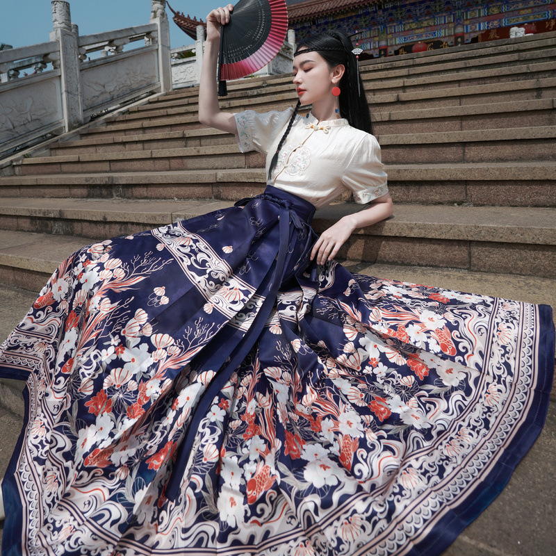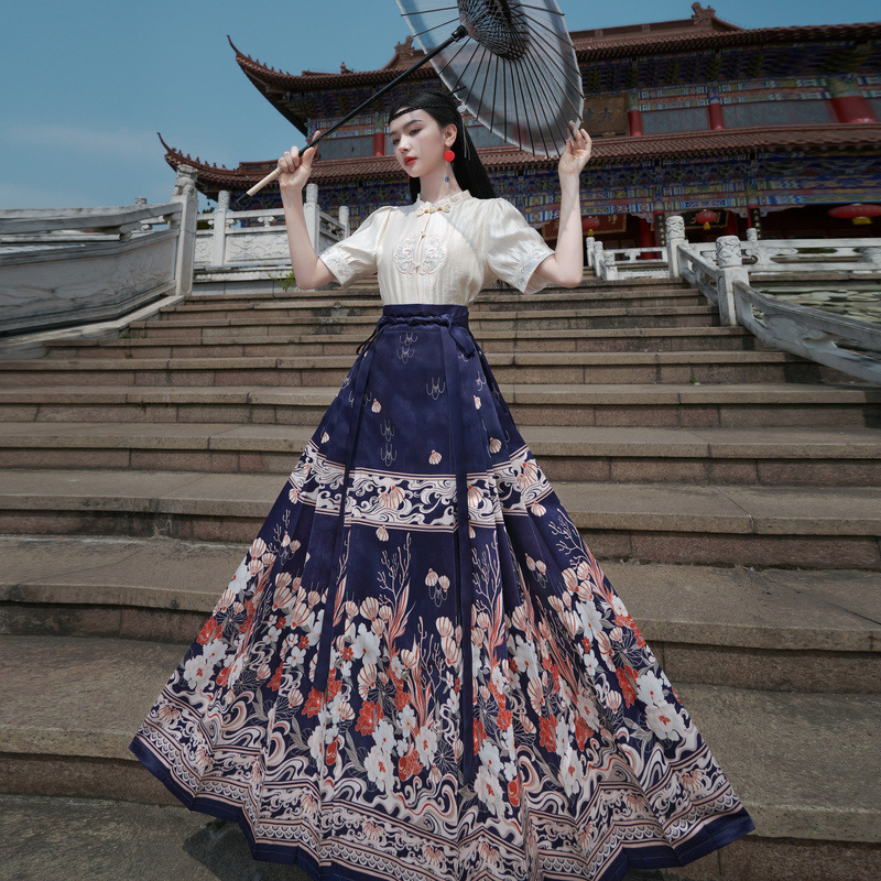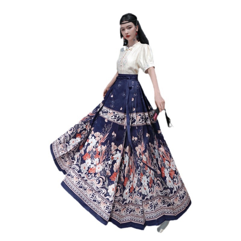 | nameOriginal | New Chinese Style Chinese Style Vertical Collar Embroidered Flare Sleeve Chiffon Short Sleeve Shirt One-piece High Definition Printed Horse Face Skirt |