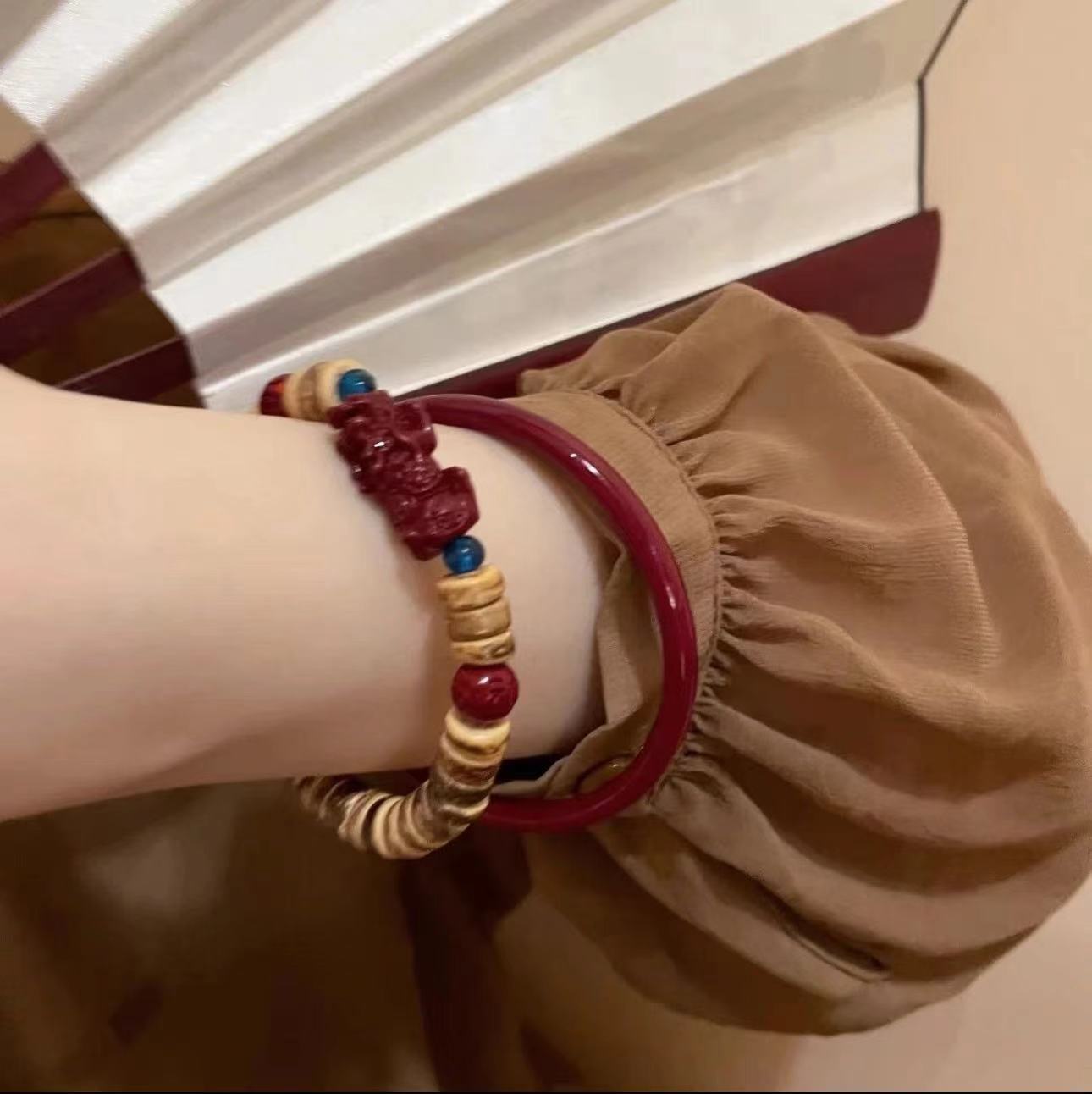 | nameOriginal | New Chinese-style Coconut Shell Cinnabar Beaded Bracelet suit Women's Ins Niche Design Retro Elegant All-match Bracelet |