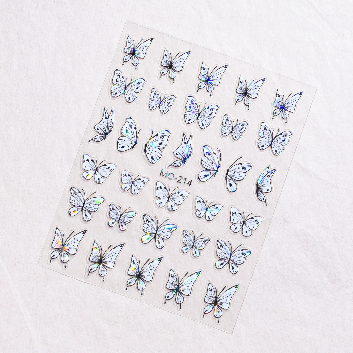 | nameOriginal | New Chinese style cool white butterfly stickers simple high-end antique broken sense manicure white moonlight back glue nail stickers |