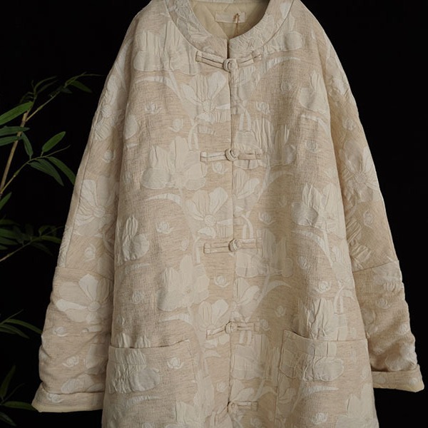New Chinese style cotton and linen jacquard vintage handmade buckle mid-length coat cotton-padded coat 308