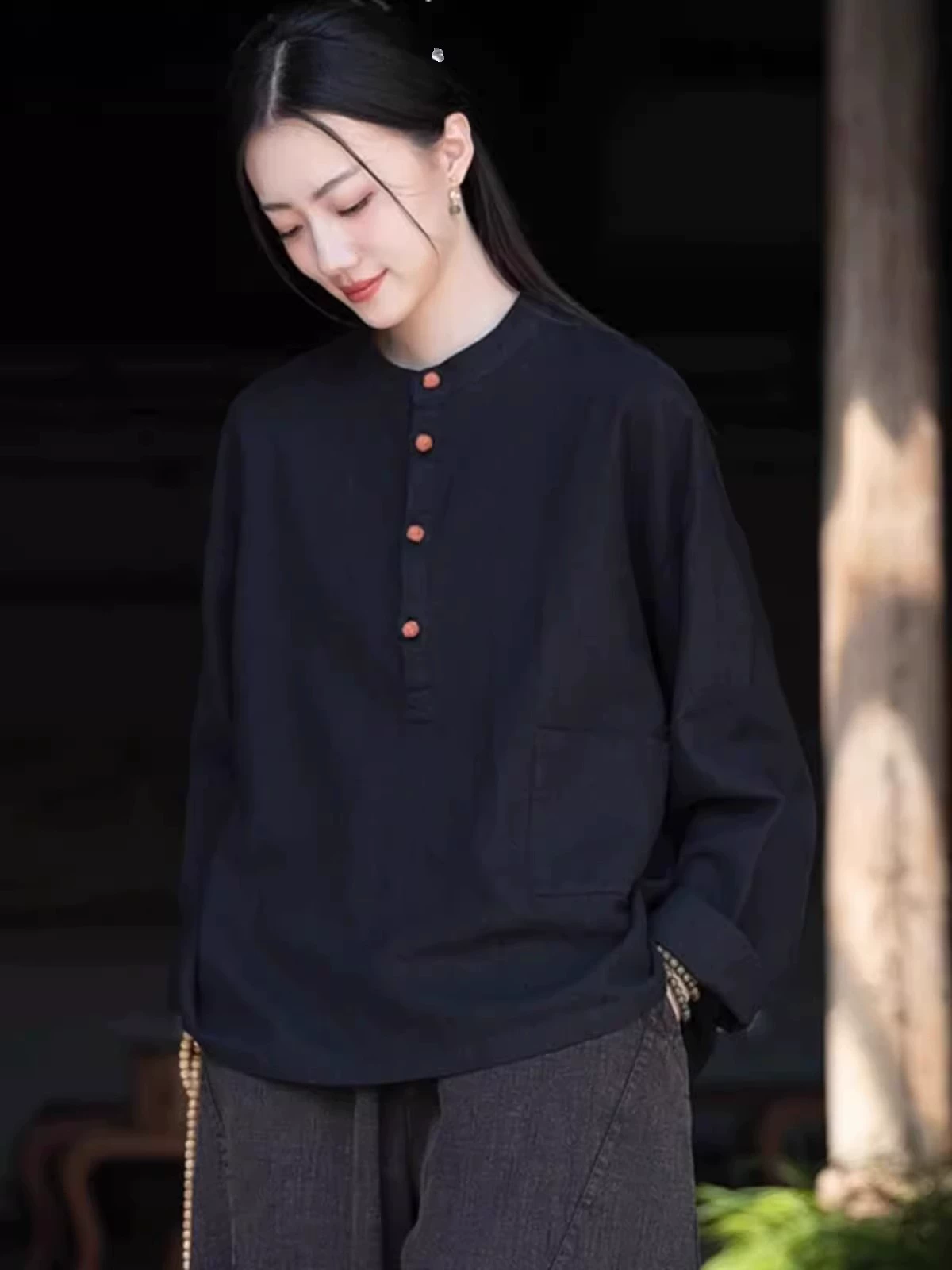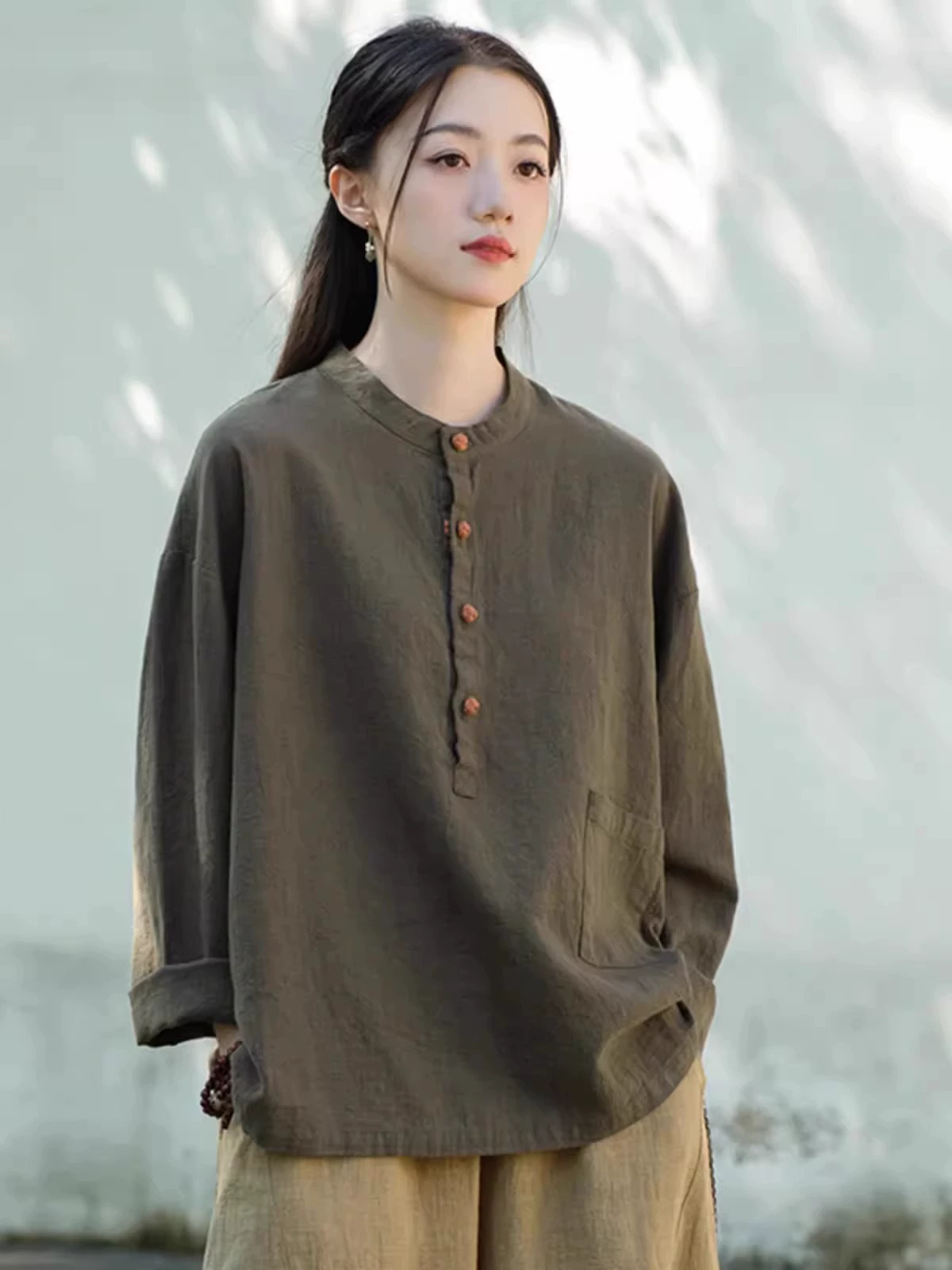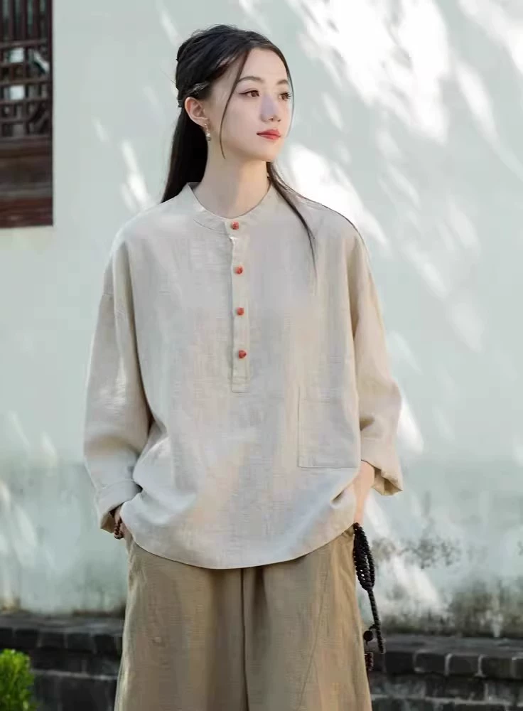 | nameOriginal | New Chinese style cotton and linen Zen clothes for women stand collar button up top |
