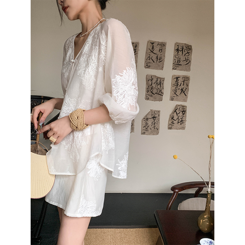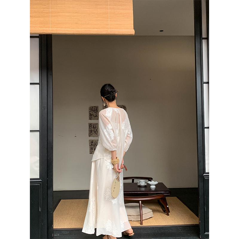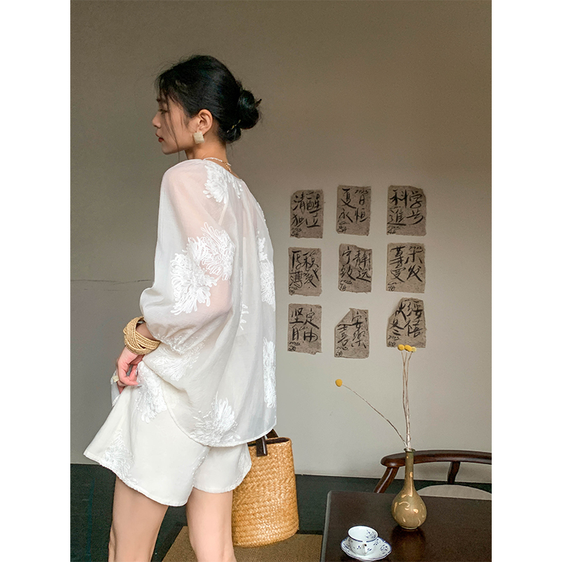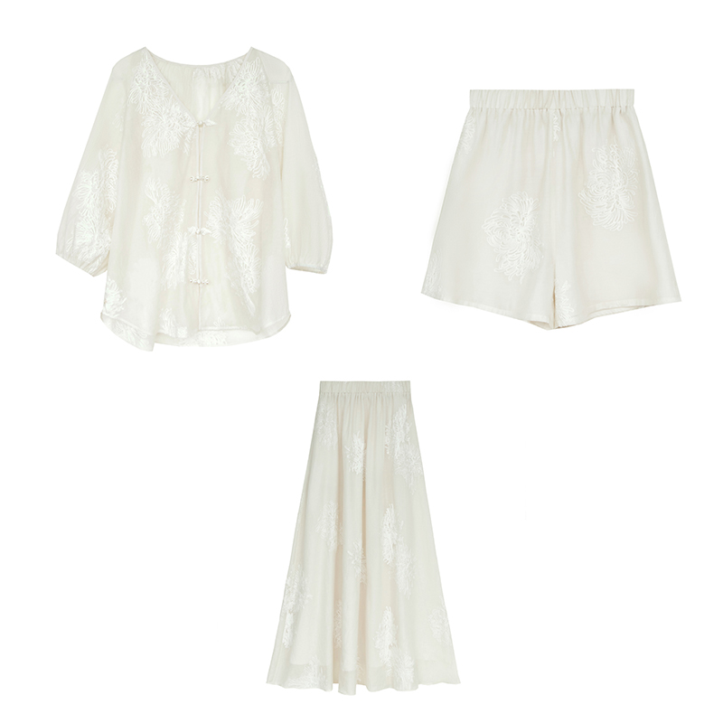 | nameOriginal | New Chinese-style creamy-white Two-piece Suit Women's Spring and Summer National Style Top Printed Skirt Wide-leg Shorts |