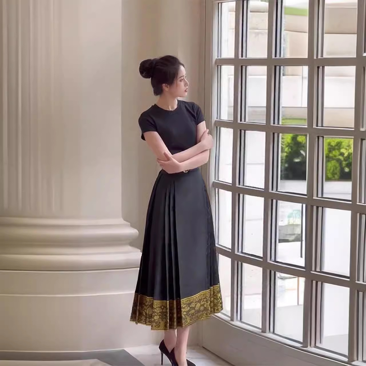 | nameOriginal | New Chinese style cropped vest skirt suit women's 2024 spring and summer new Dragon year Hanfu black short sleeve top skirt |